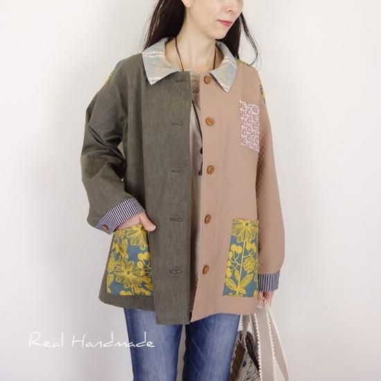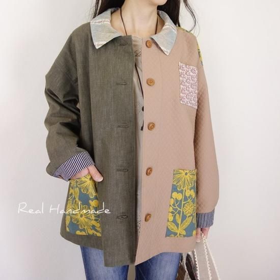 [予約販売] Oliveデニムとノルディックフラワーパッチドロップ羽織りシャツ