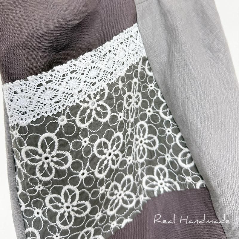 深みあるモカリネンをサイドに切り替えて仕立てた、