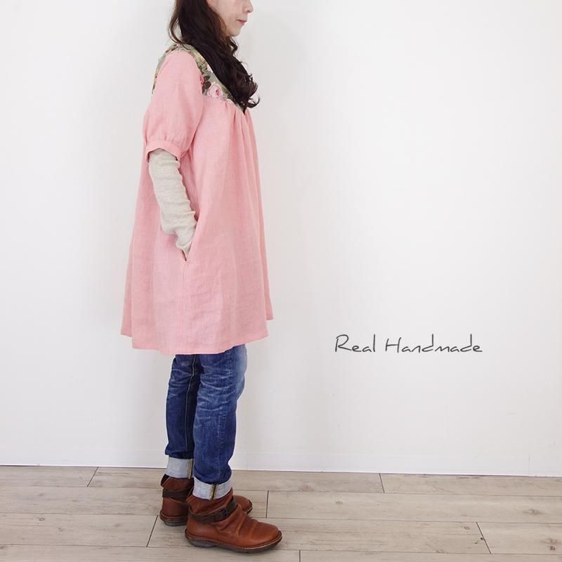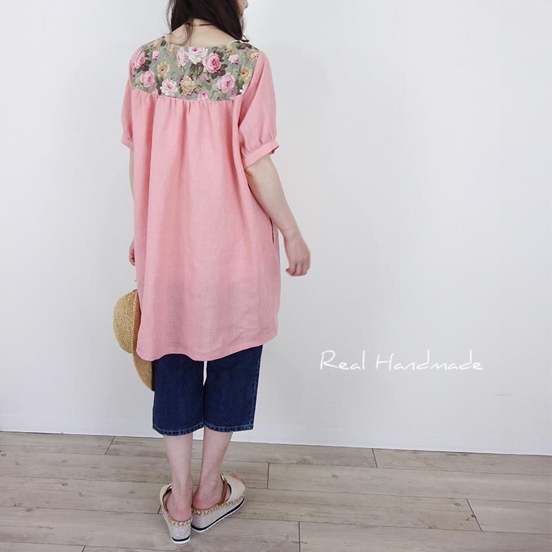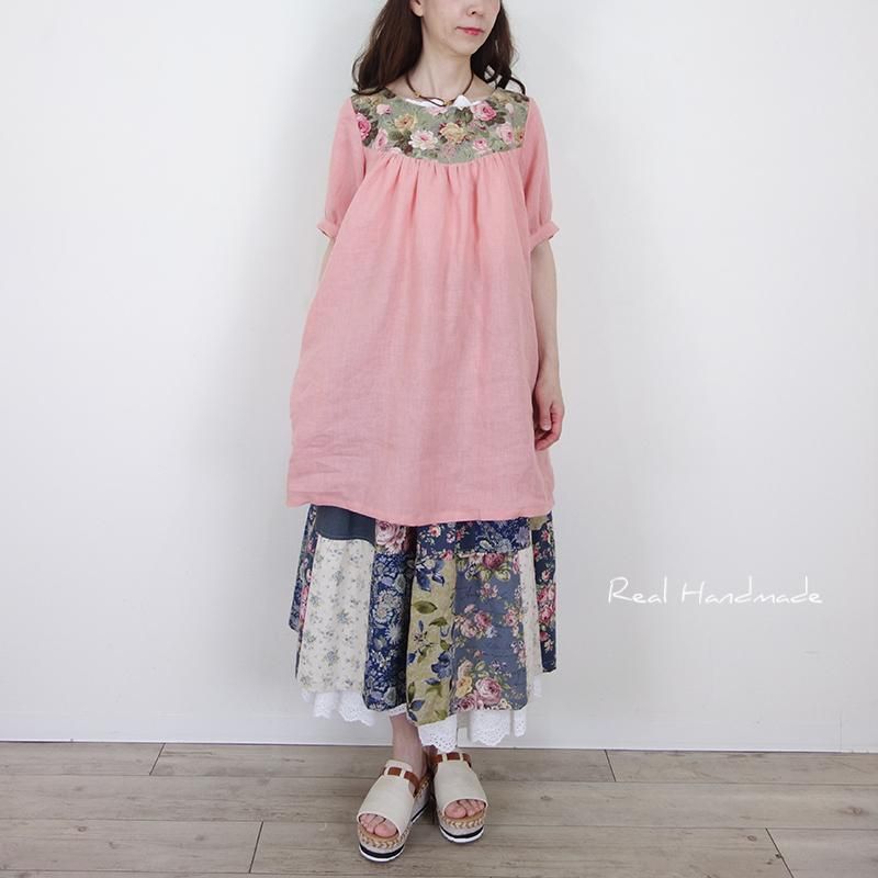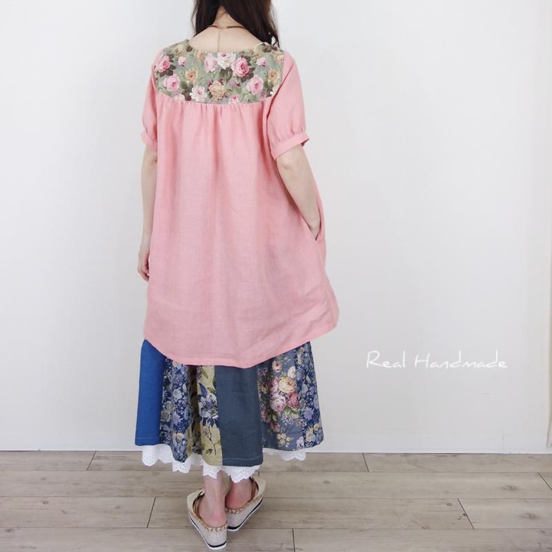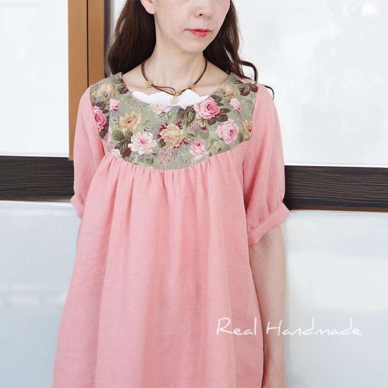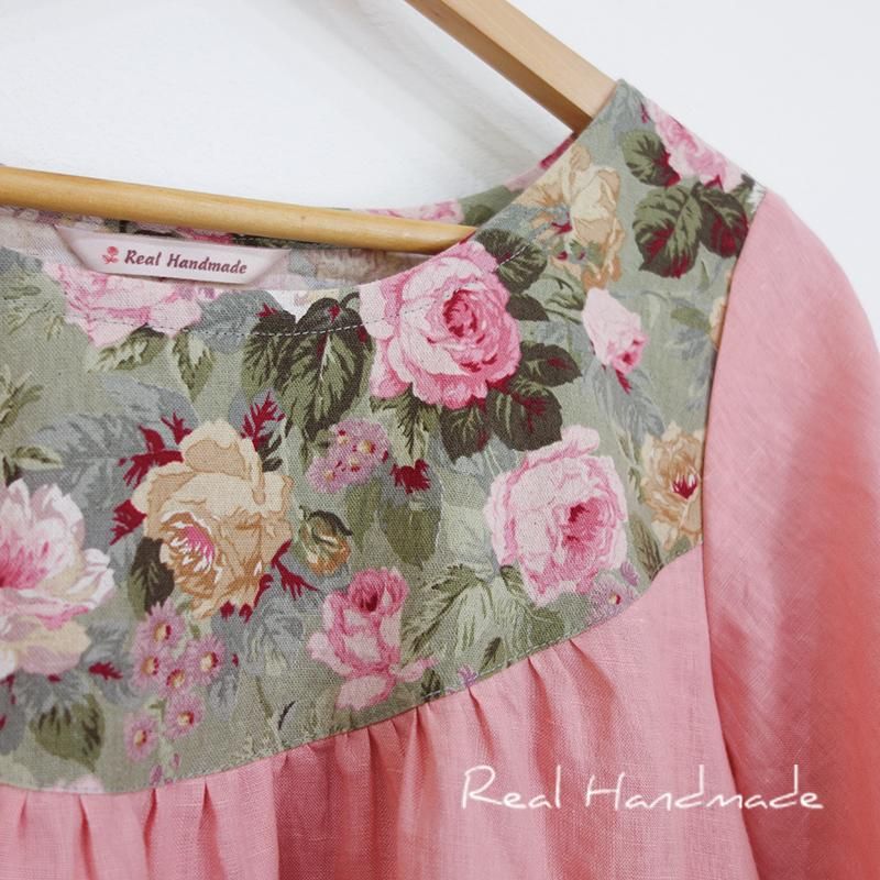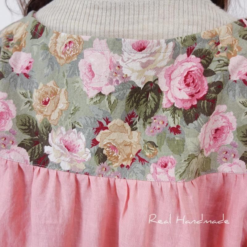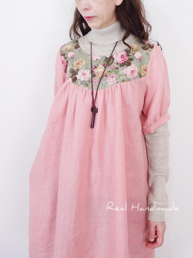 ・切り替え部分(胸元・後ろヨーク):綿麻(ローズ柄)