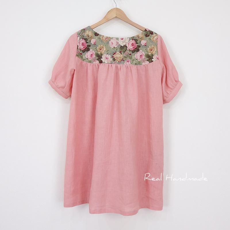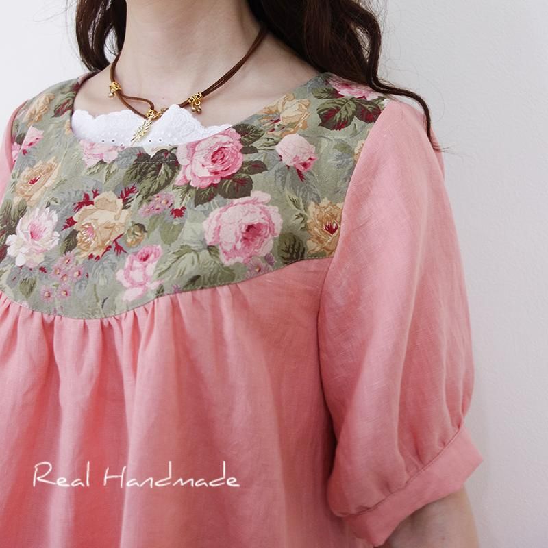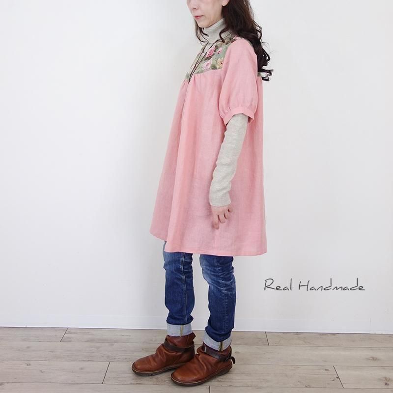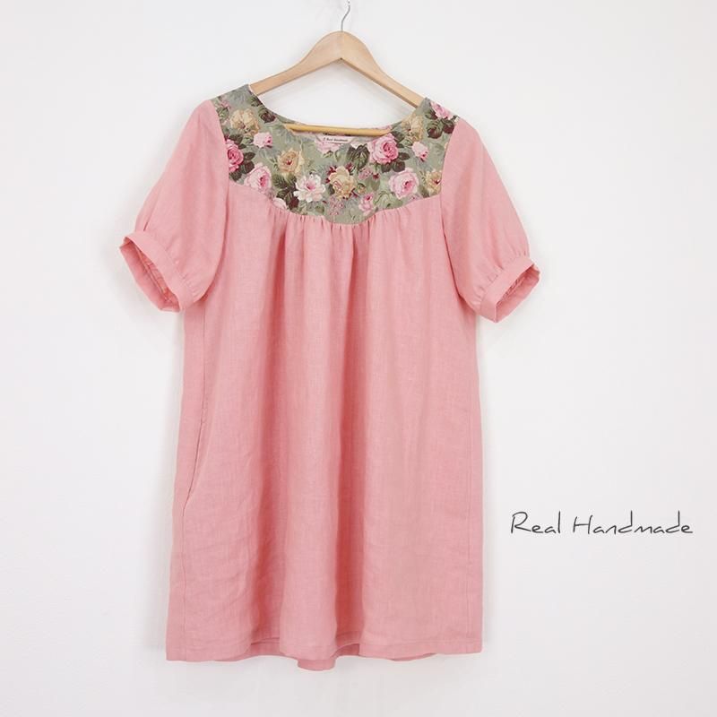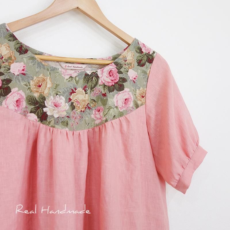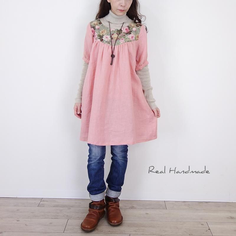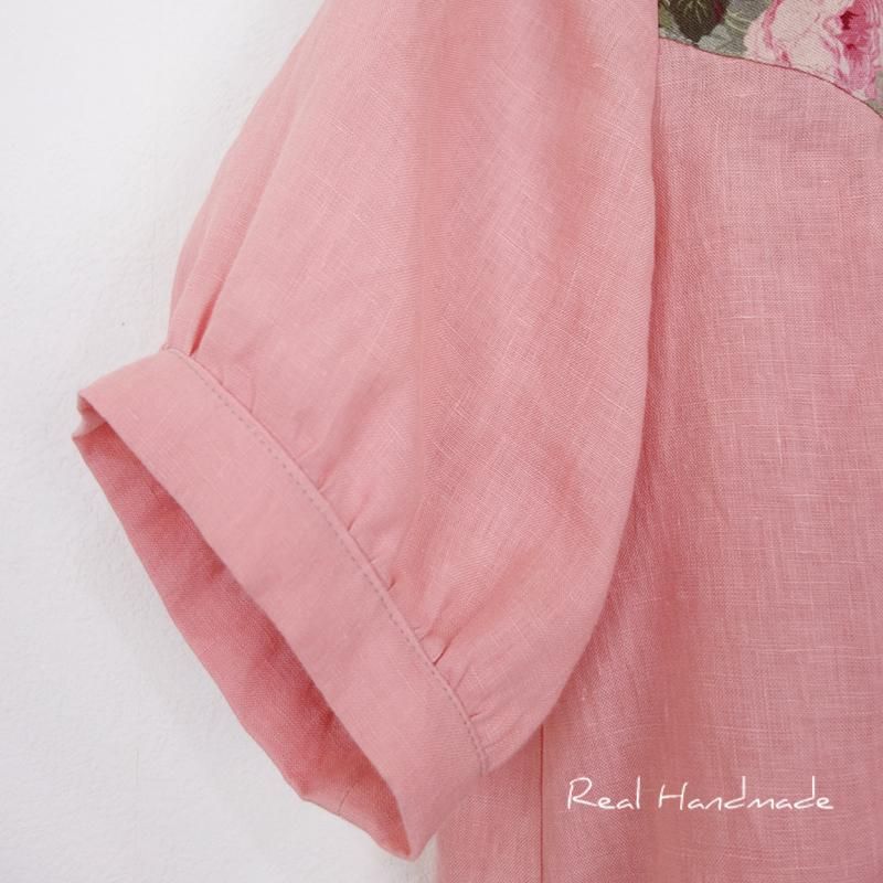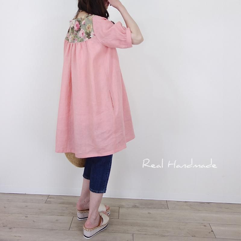 ・切り替え部分(胸元・後ろヨーク):綿麻(ローズ柄)