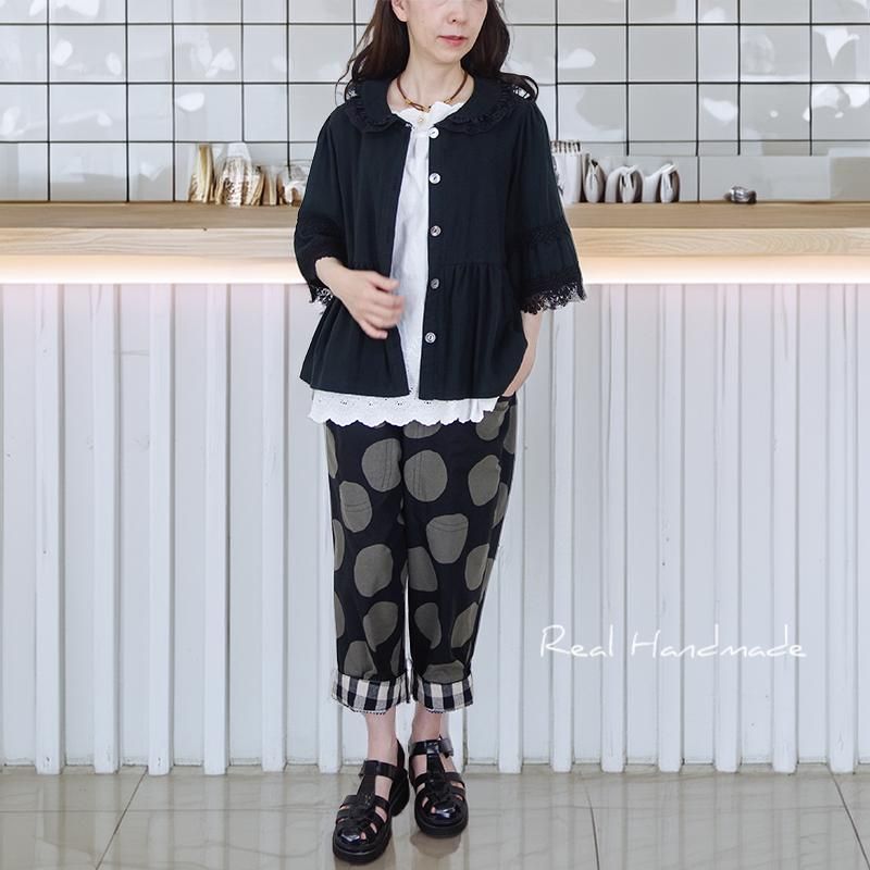 [Coordinate] [予約販売] ブラックダブルガーゼのしっとりレース羽織りブラウス