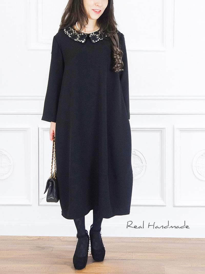 クラシカルな雰囲気が漂うフラットカラーのワンピースをお作りしました。