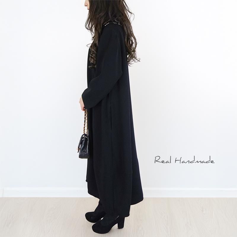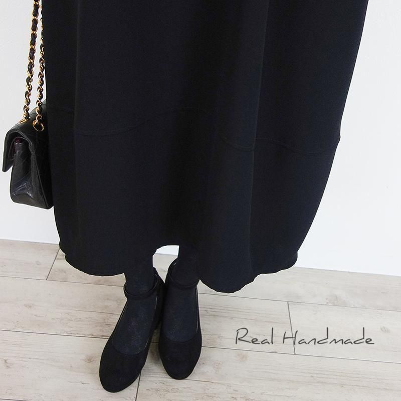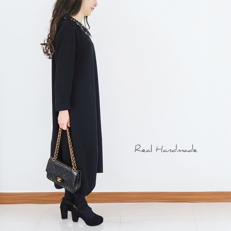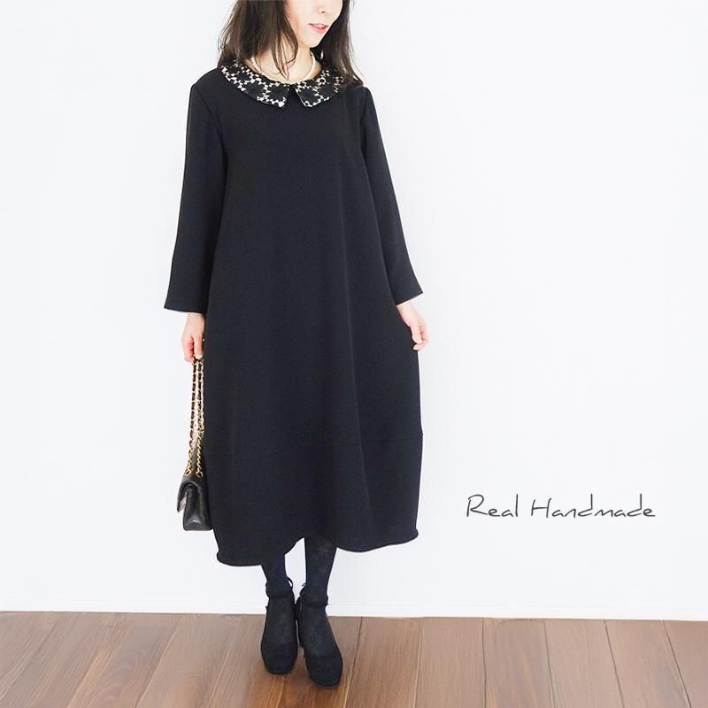 季節を問わず長く楽しめる、イージーケアなブラックワンピースです。