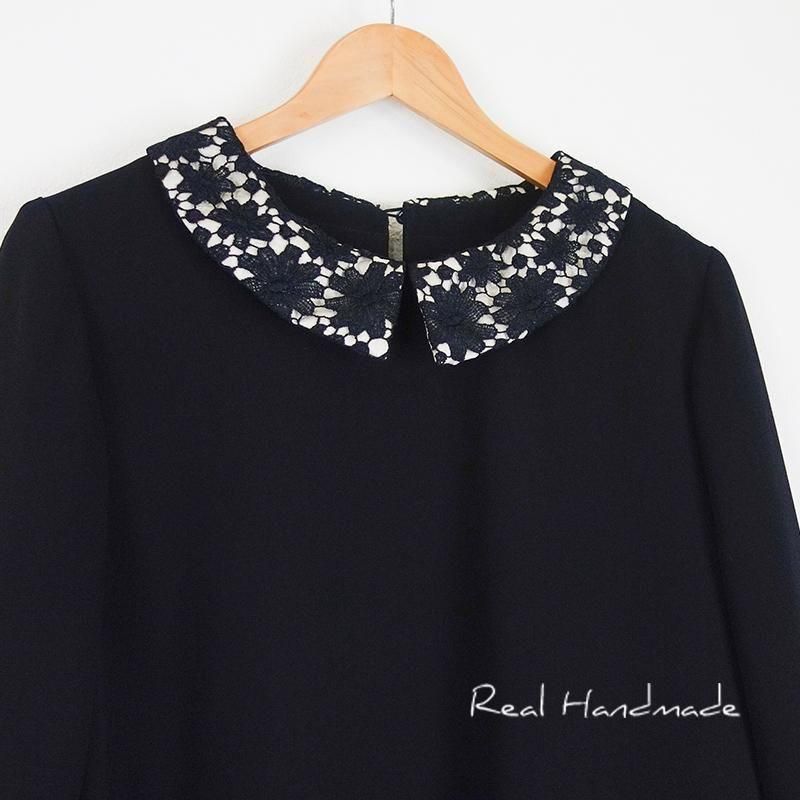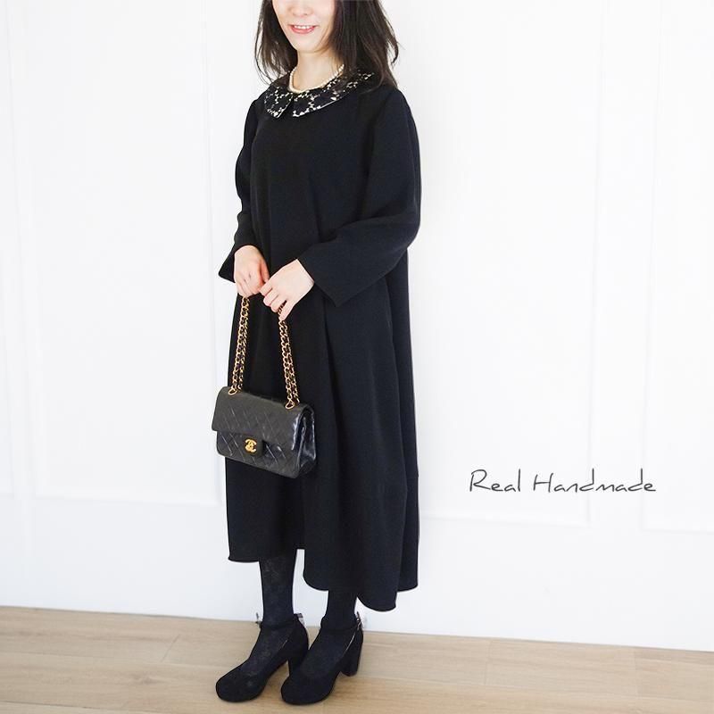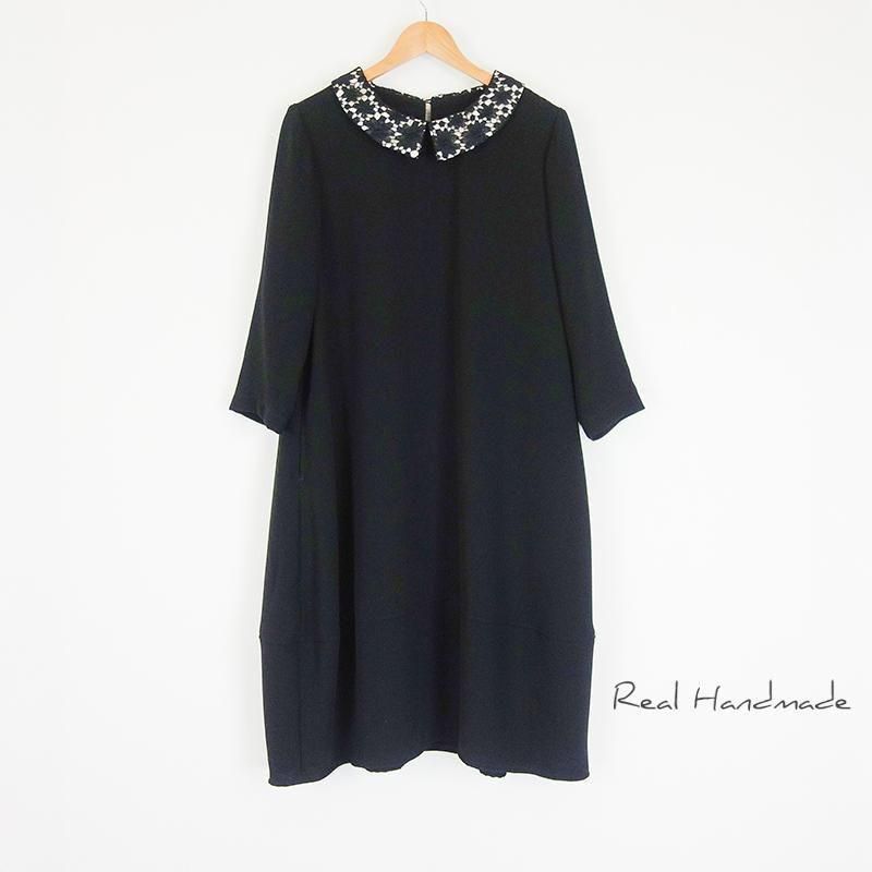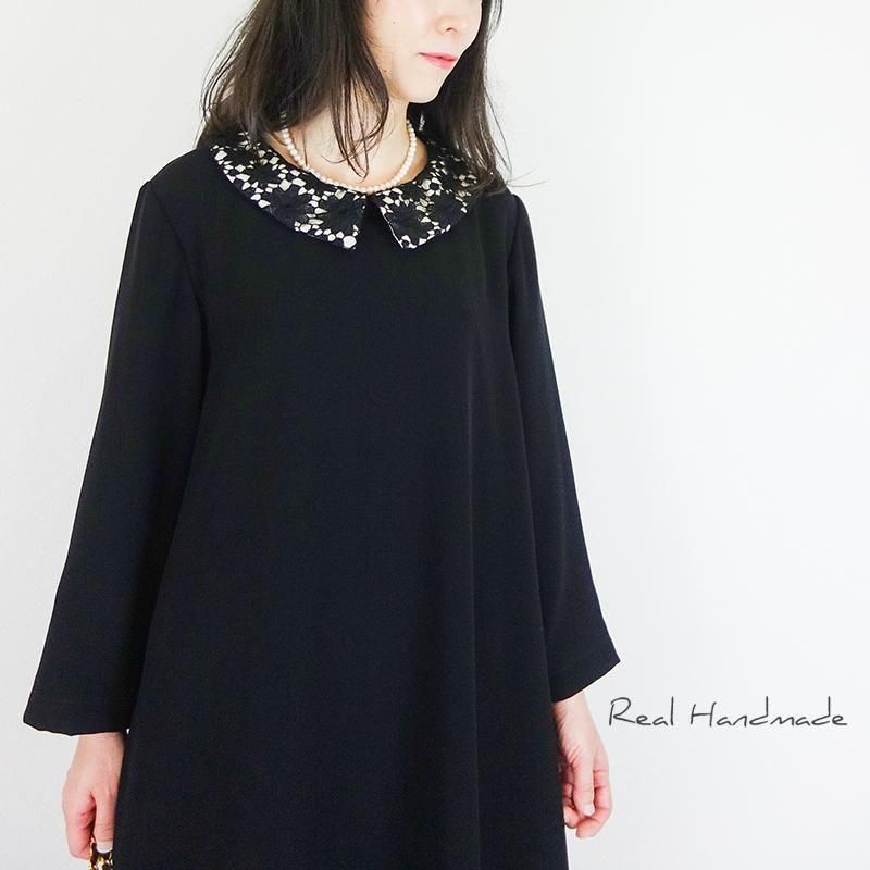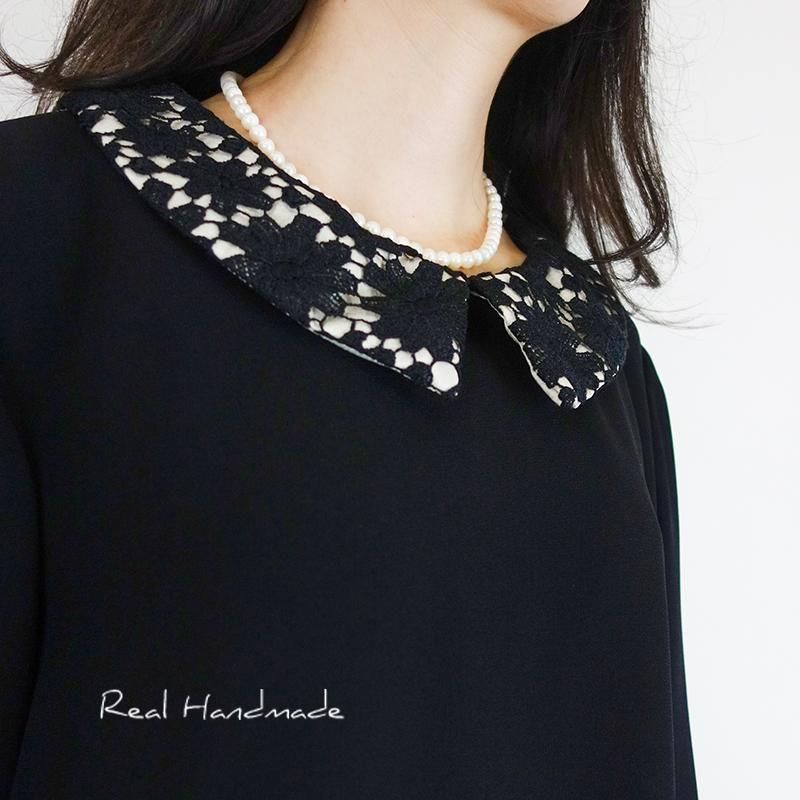[裏地付きタイプ] [予約販売] ブラックジョーゼット襟ケミカルレース切替ワンピース(総裏仕立て)