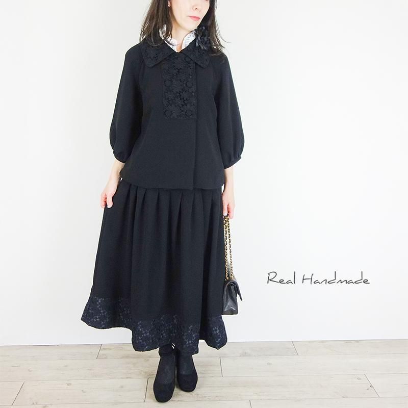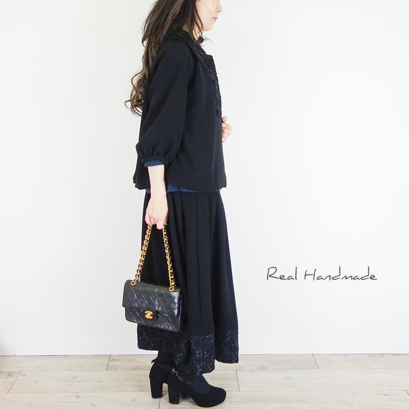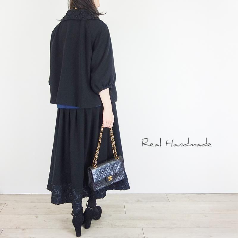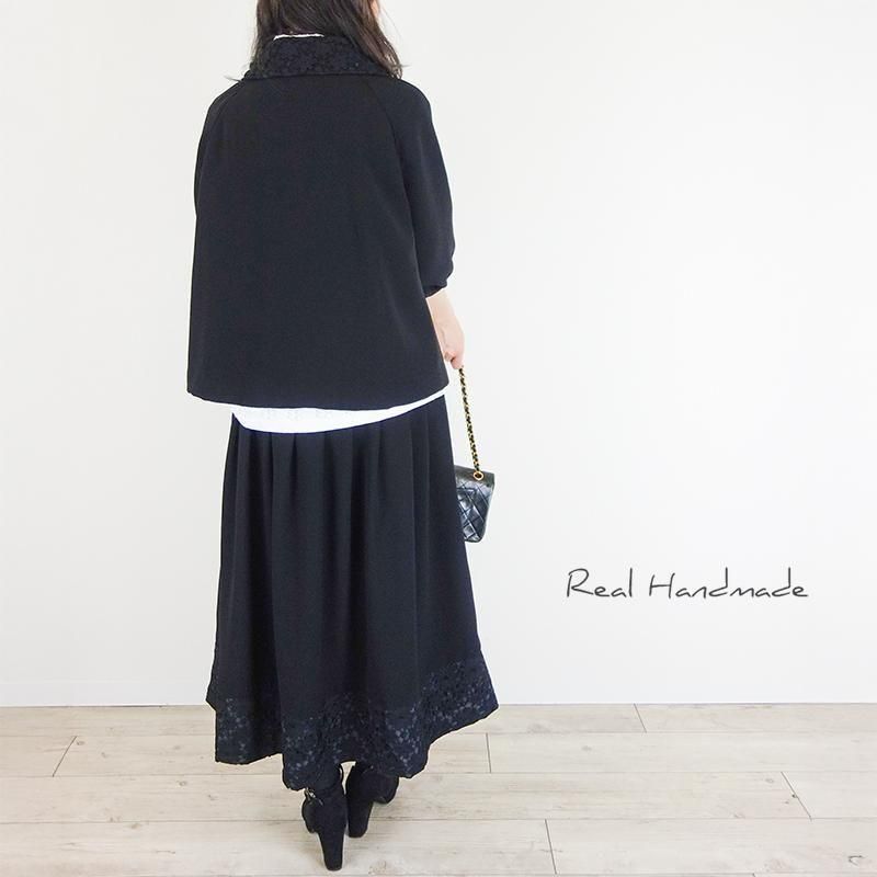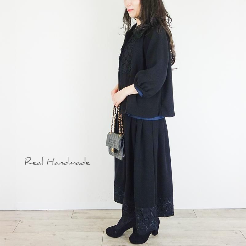 上質なブラックジョーゼット生地に、美しいブラックケミカルレースをあしらった、