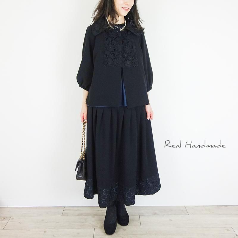 ▶︎[予約販売] ブラックジョーゼットケミカルレースタックスカート(セットアップになります)(イージーケア・裏地なし)