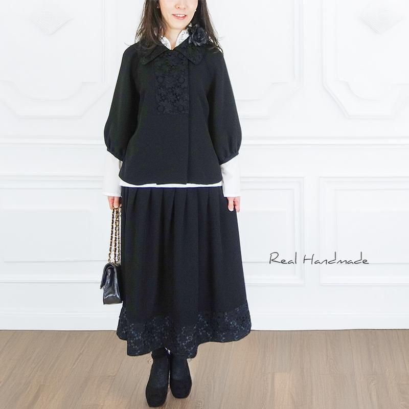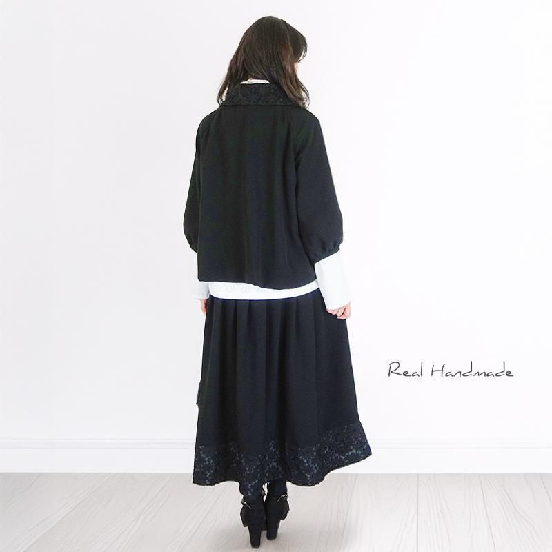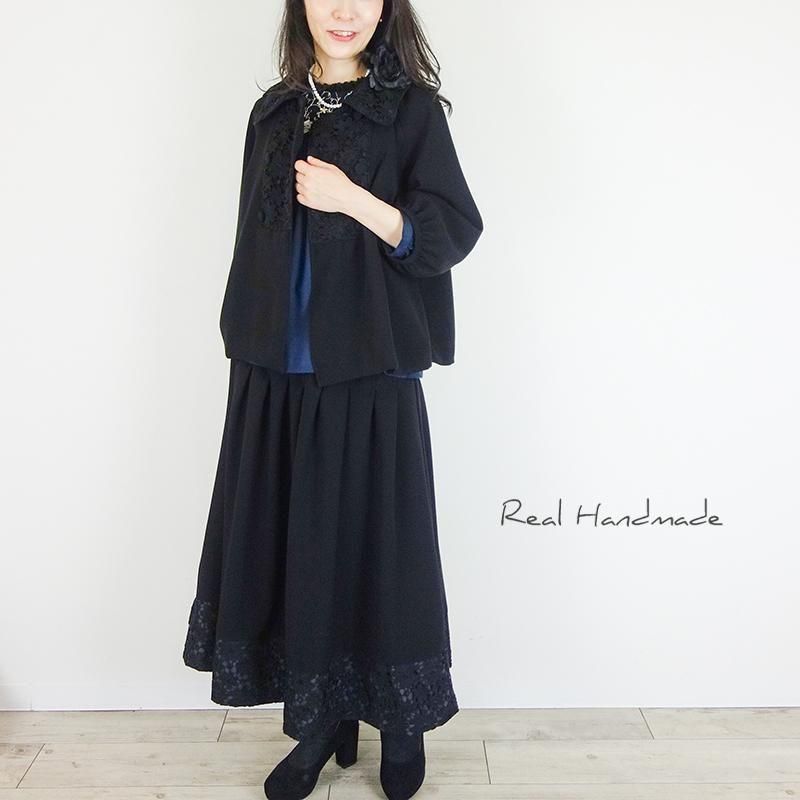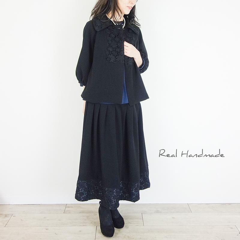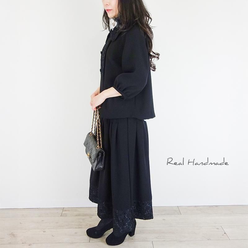 [裏地付きタイプ] [予約販売] ブラックジョーゼットケミカルレースWジャケット(セットアップになります)(総裏仕立て)