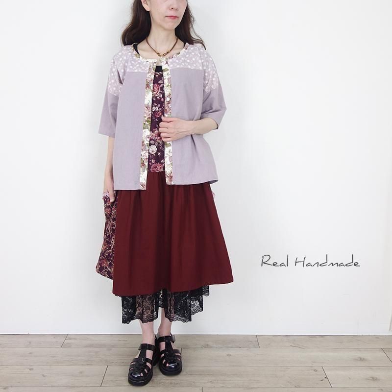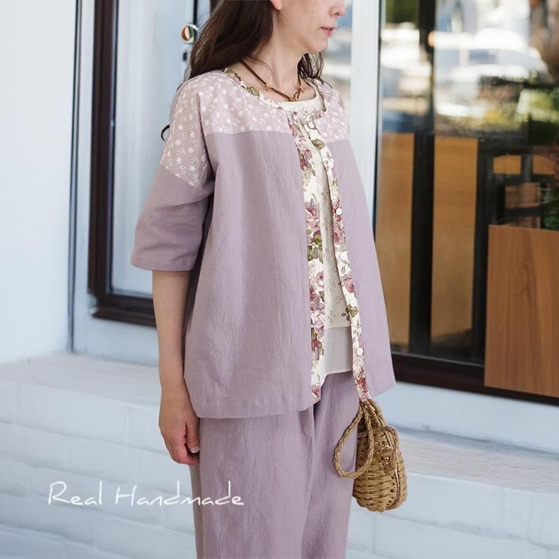 ラベンダーフローラ・レースヨークの羽織りブラウス -ドロップ袖&セットアップ対応-