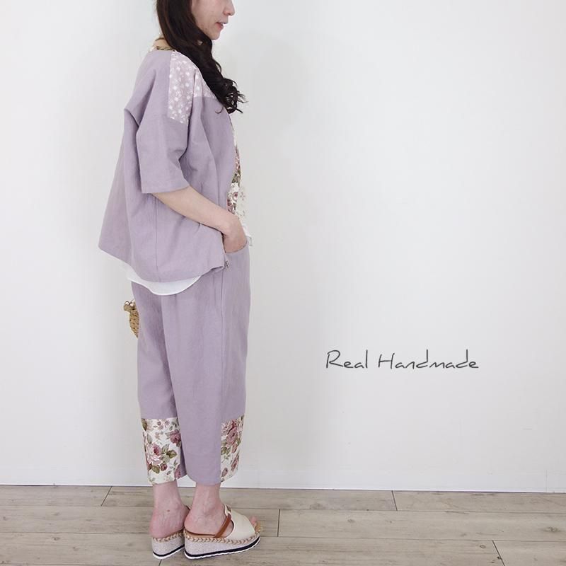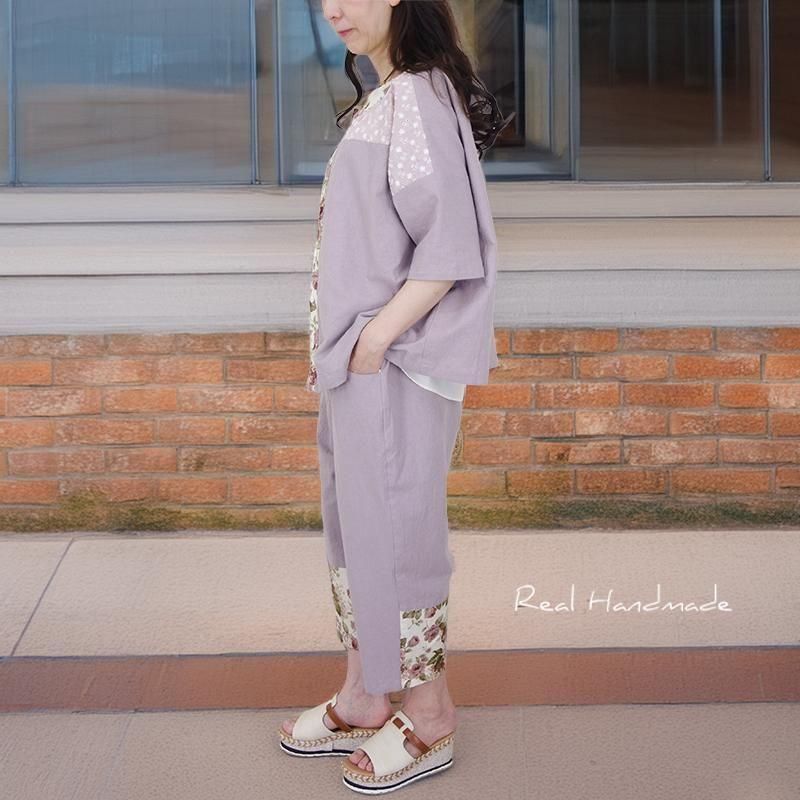 ラベンダーフローラ・ローズパネルのイージーパンツ-セットアップ対応-