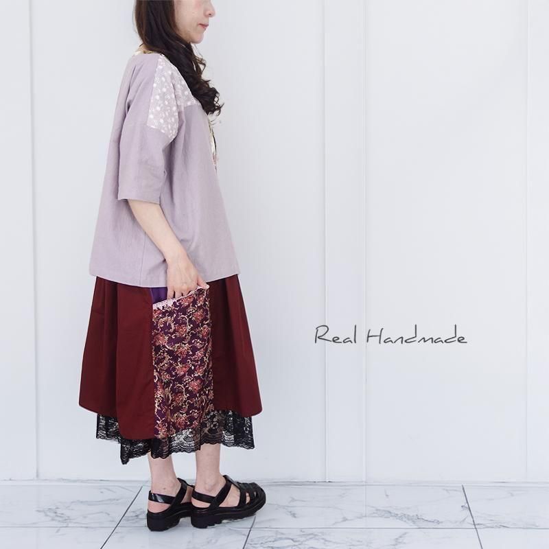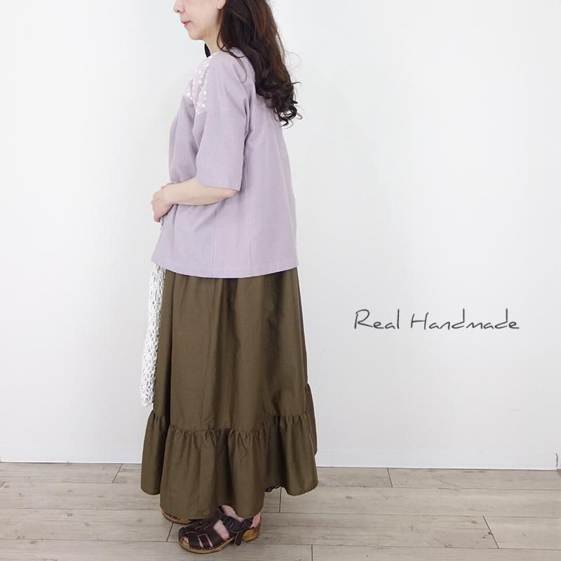 リネンパッチティアードスカート(モーブ) - そよぐ布の物語 -