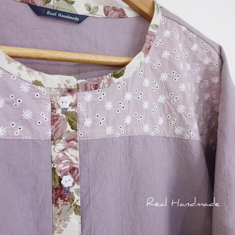 ワッシャーラベンダーリネンと草原フラワードロップチュニック
