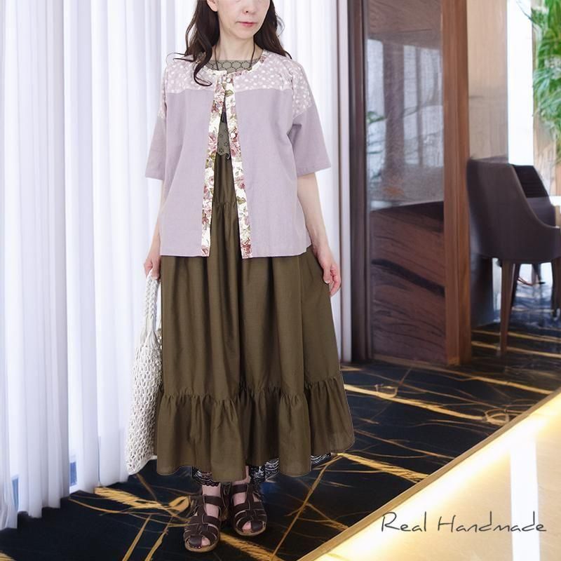 [新作予約] ワッシャーモーブリネンの2WAY羽織りブラウス(リンクコーデになります)