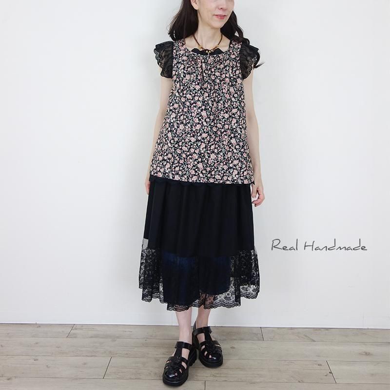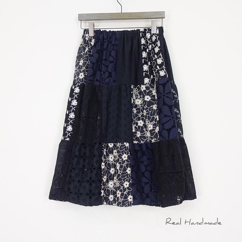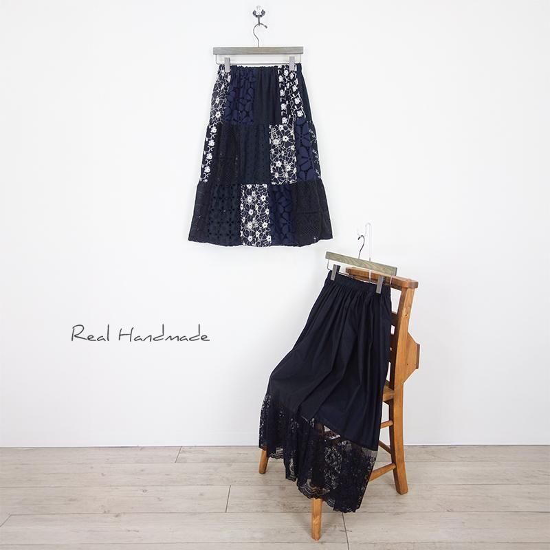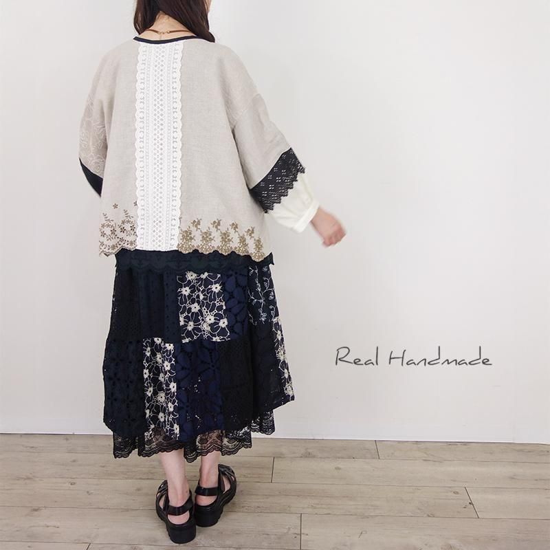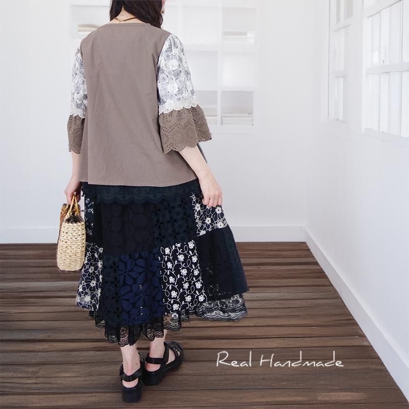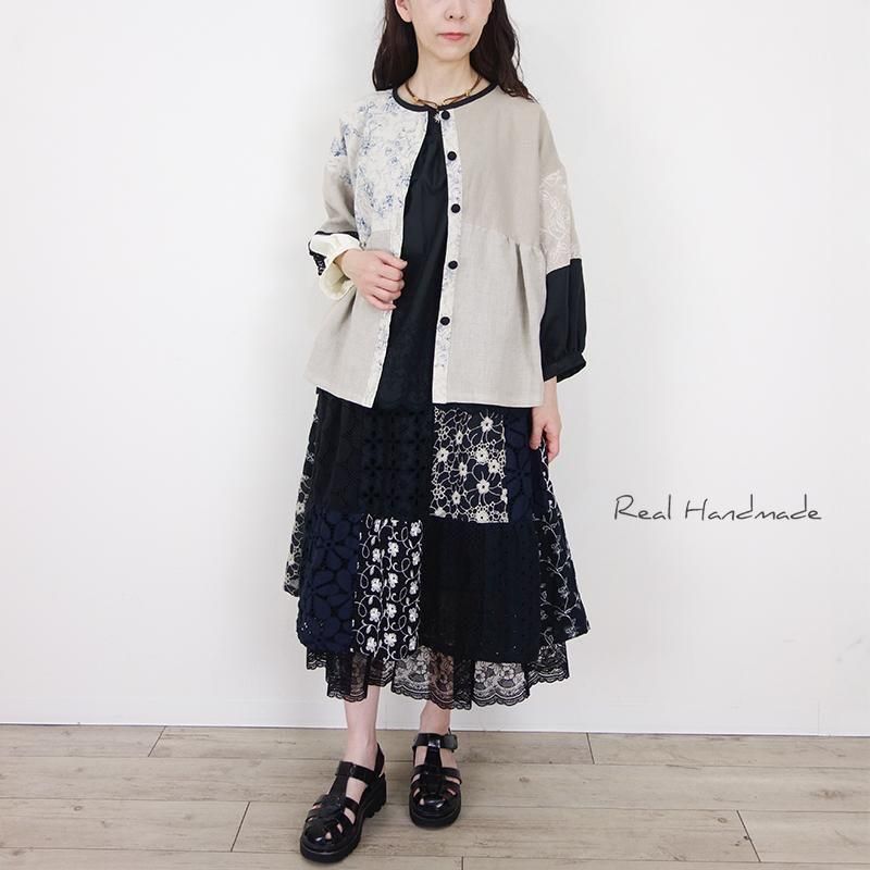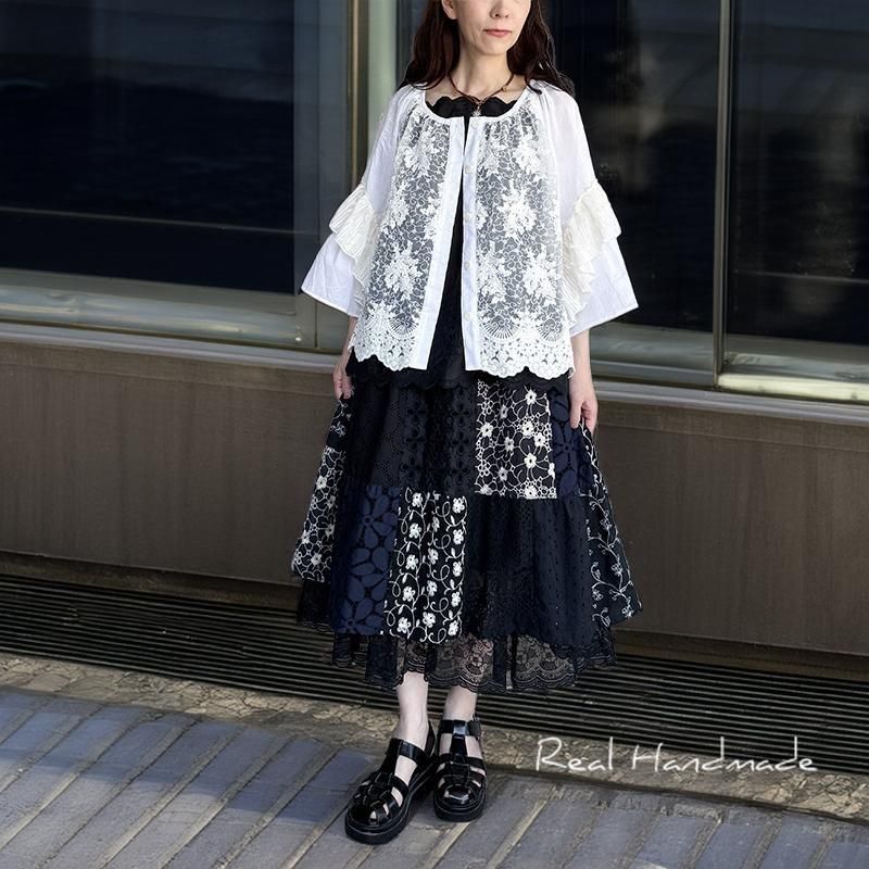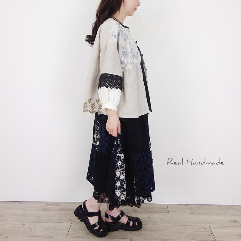 ・スカート:綿レース、ナイロン混レース、リネン刺繍生地など(複数種の異素材を使用)