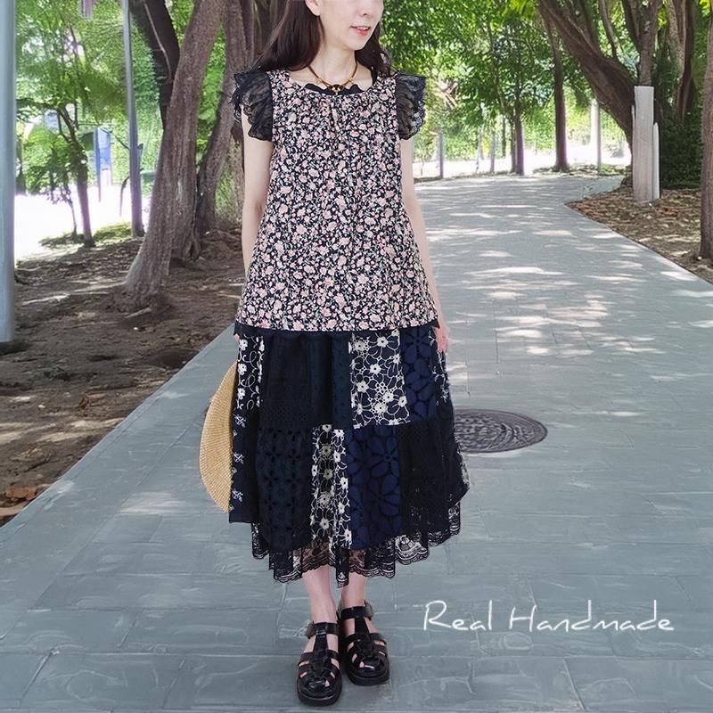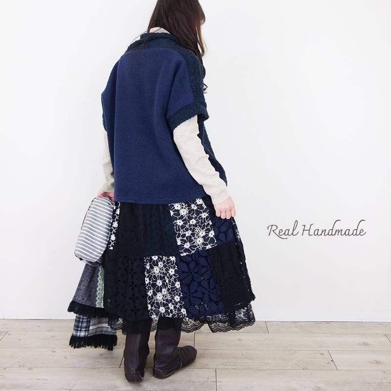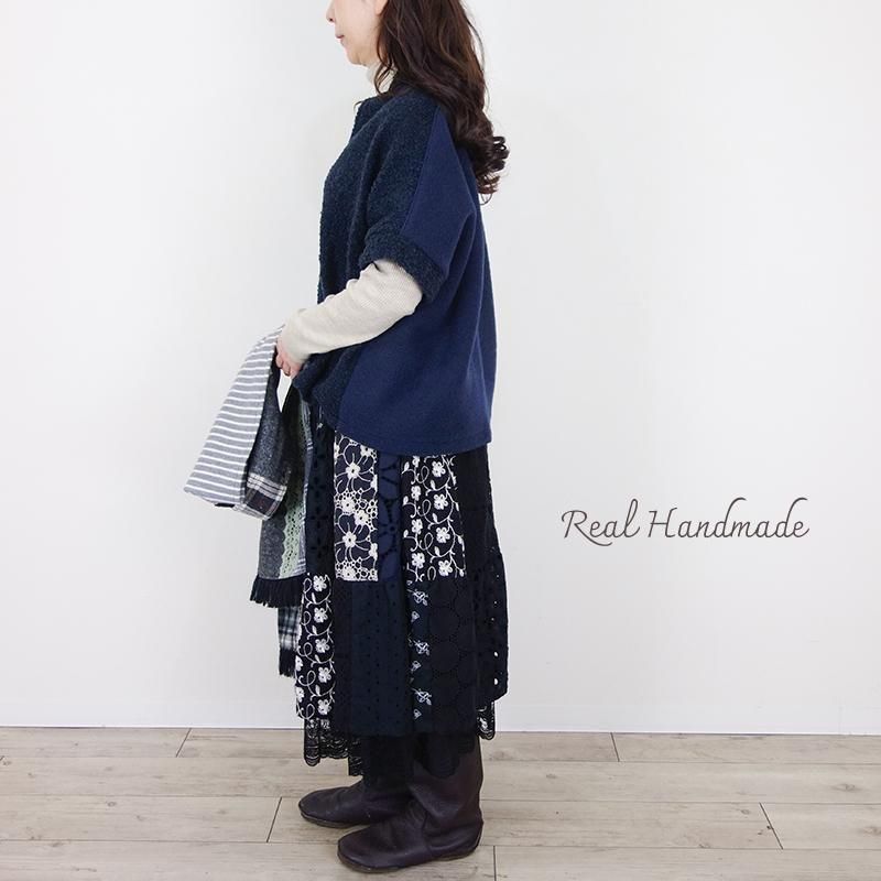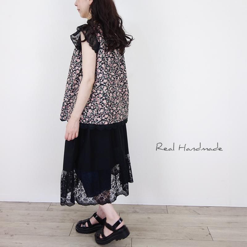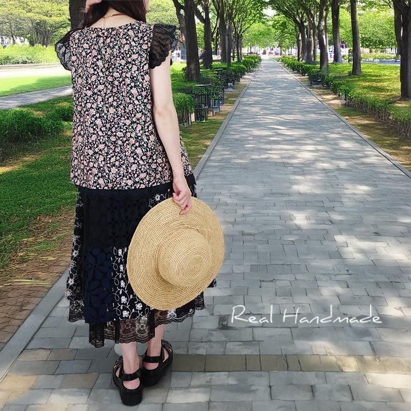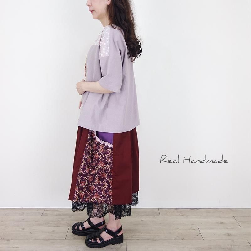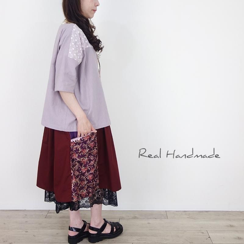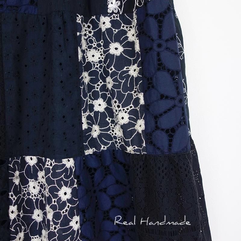・スカート:綿レース、ナイロン混レース、リネン刺繍生地など(複数種の異素材を使用)