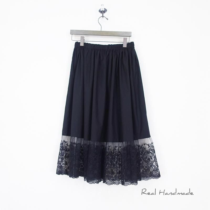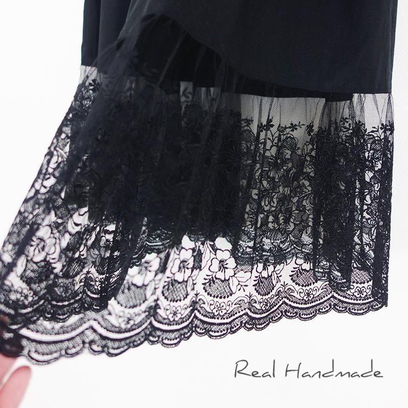 黒とネイビーのレースいろいろ・パッチティアードスカート+レースペチコート