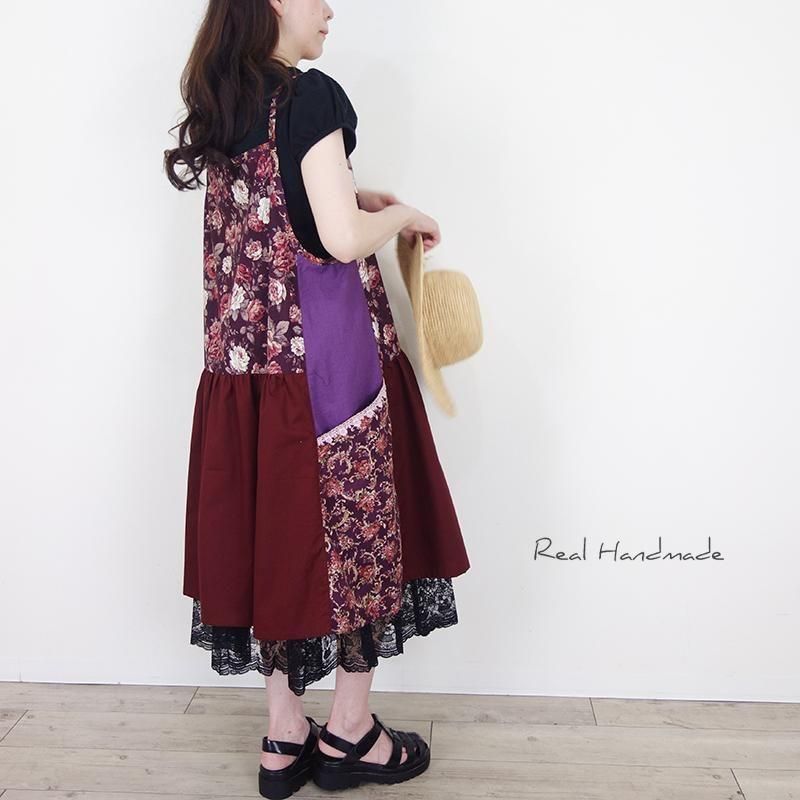 アンティークローズとすみれリネンの脇下がりキャミワンピース