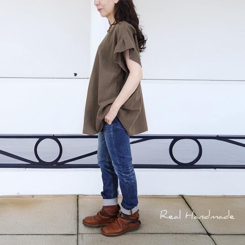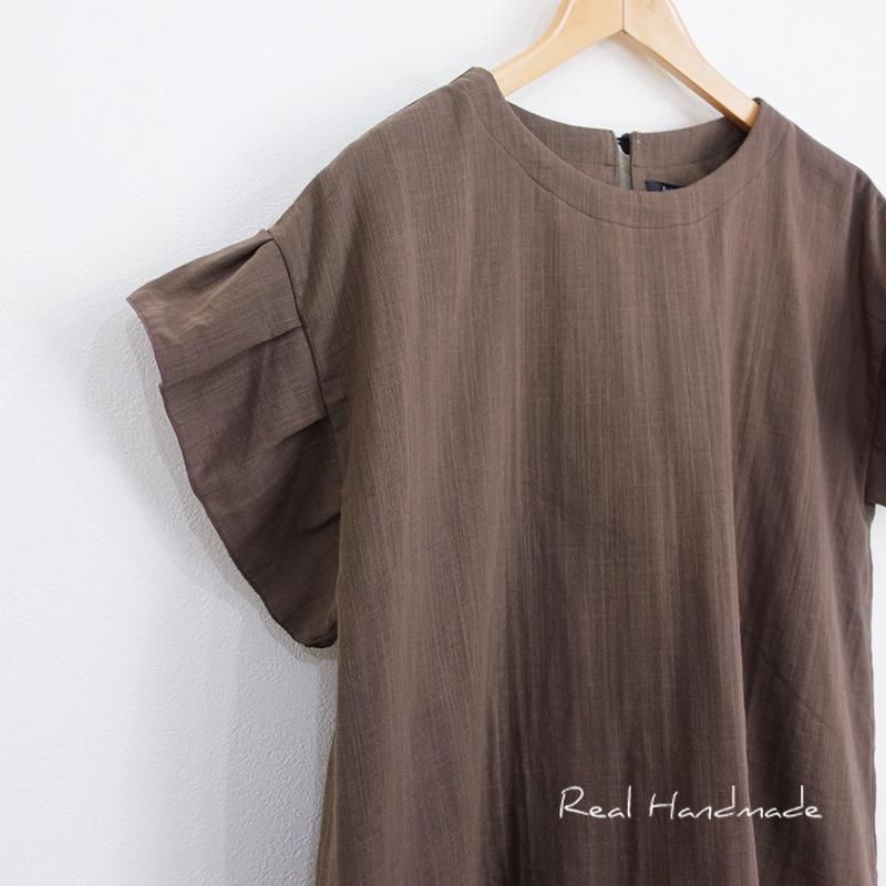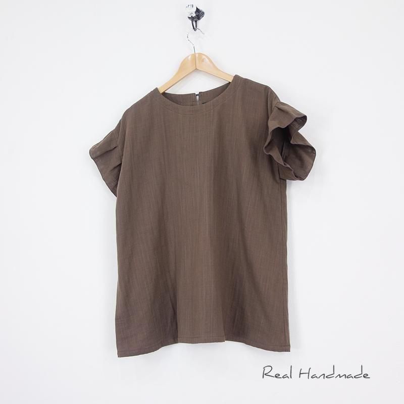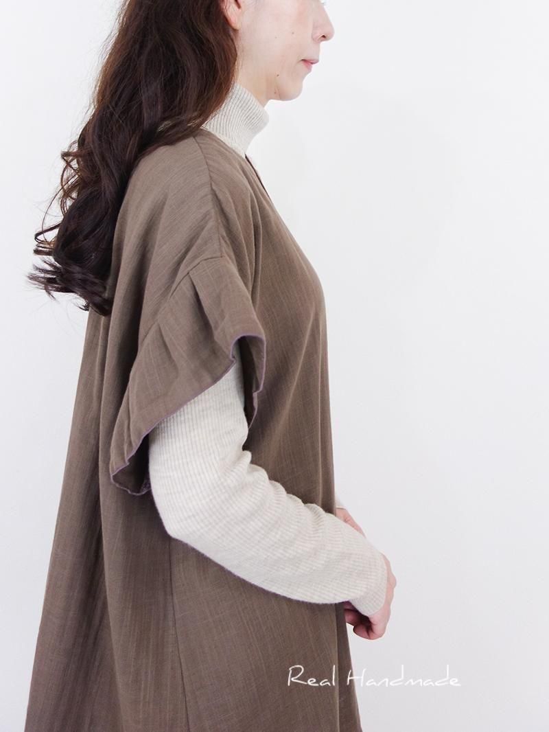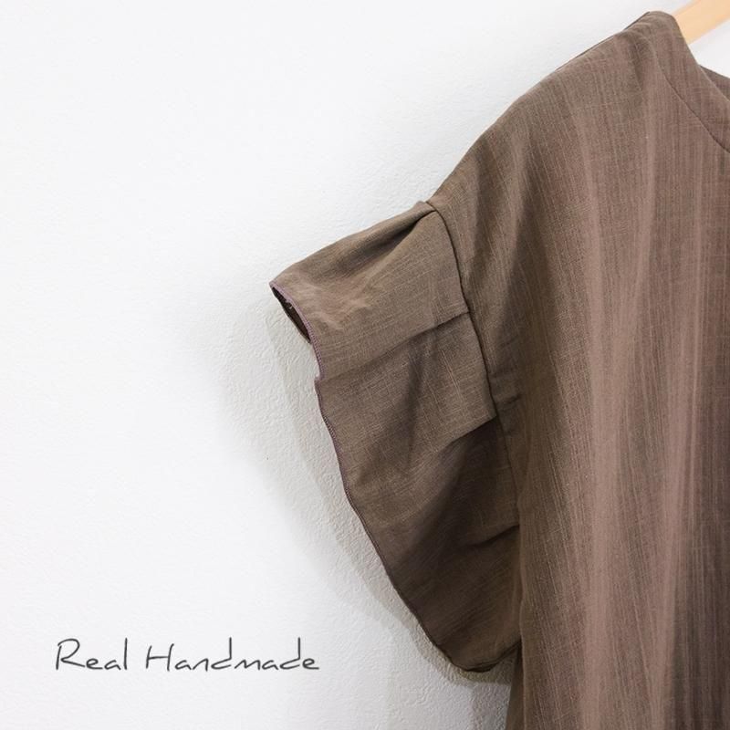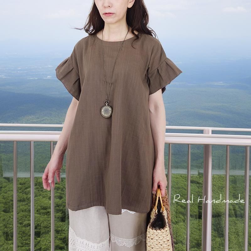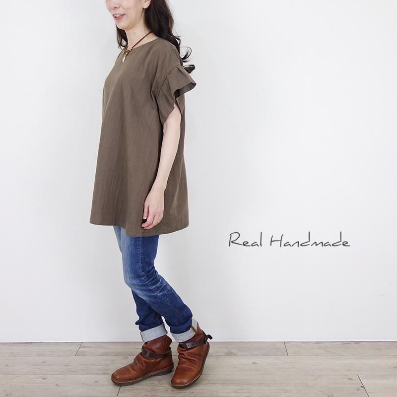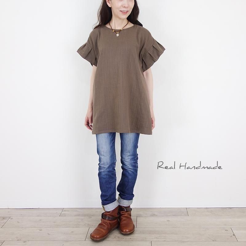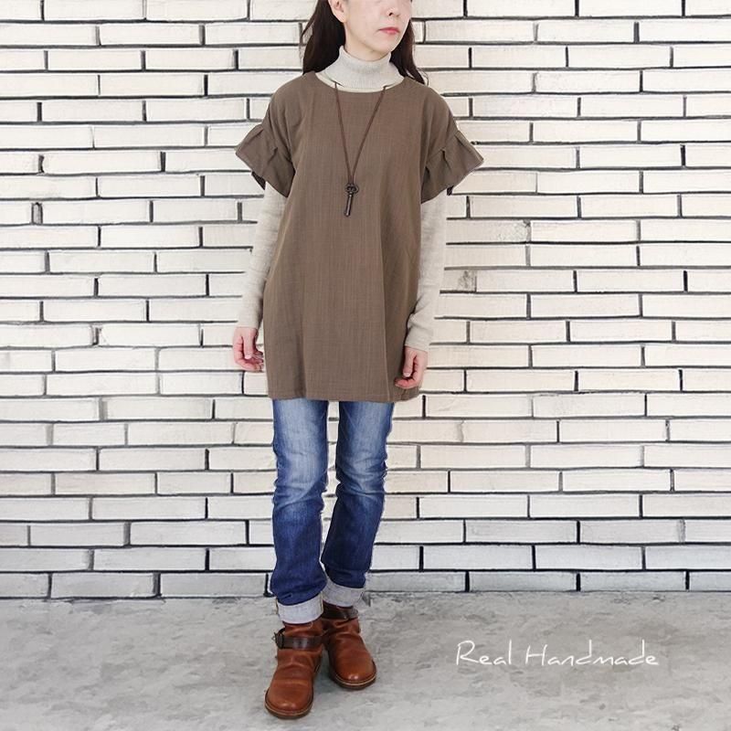 やわらかなコットンスラブダブルガーゼを使用して、袖フリルデザインのチュニックを製作しました。