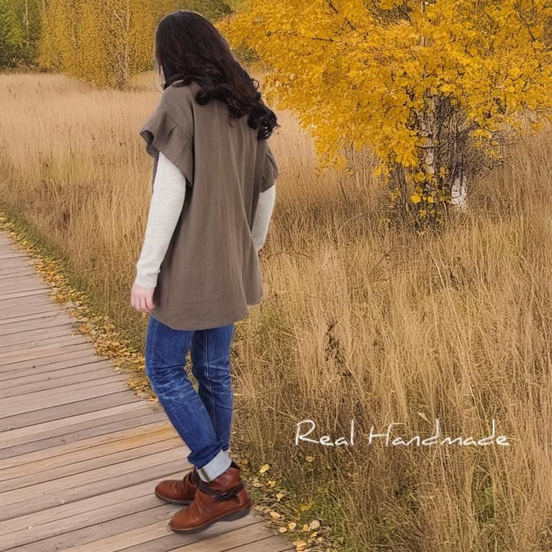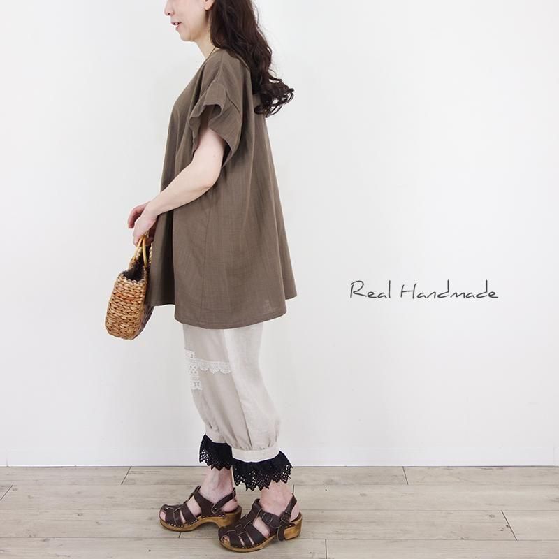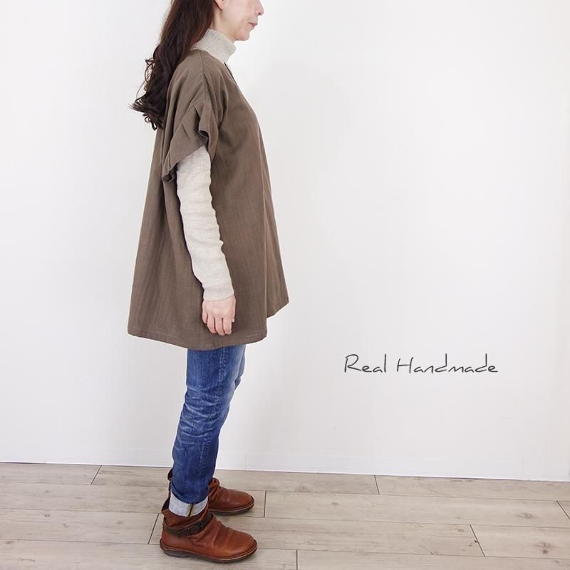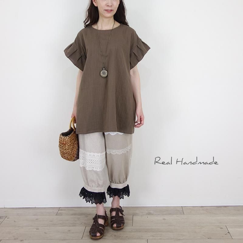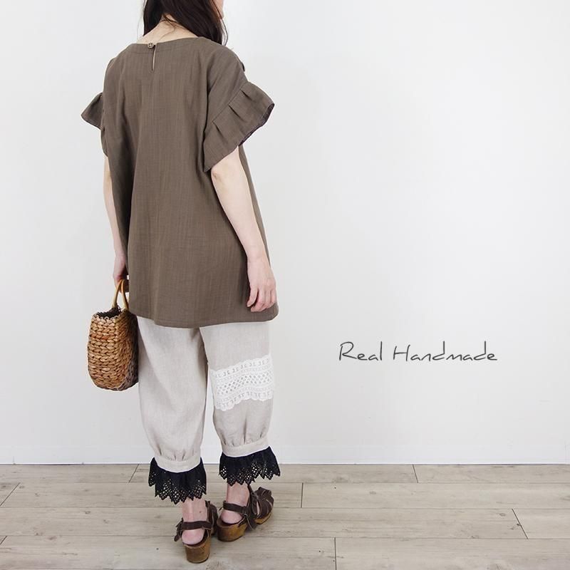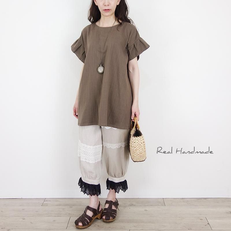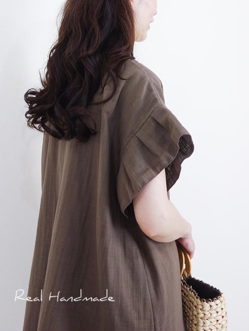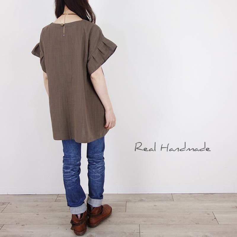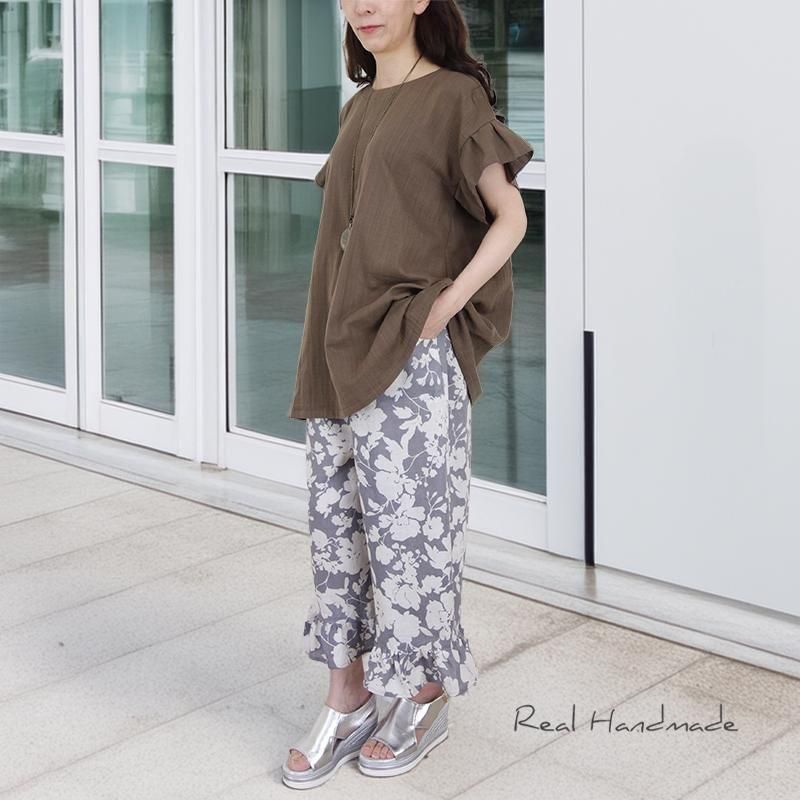やわらかなコットンスラブダブルガーゼを使用して、袖フリルデザインのチュニックを製作しました。