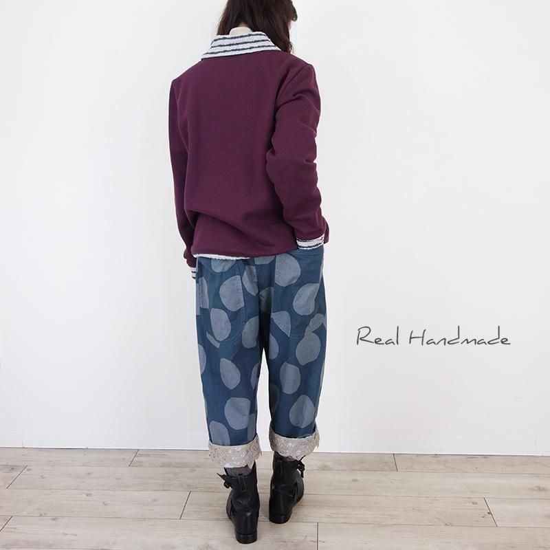 まるドットと3WAY・タータン裾のコットンリネンサルエルパンツ