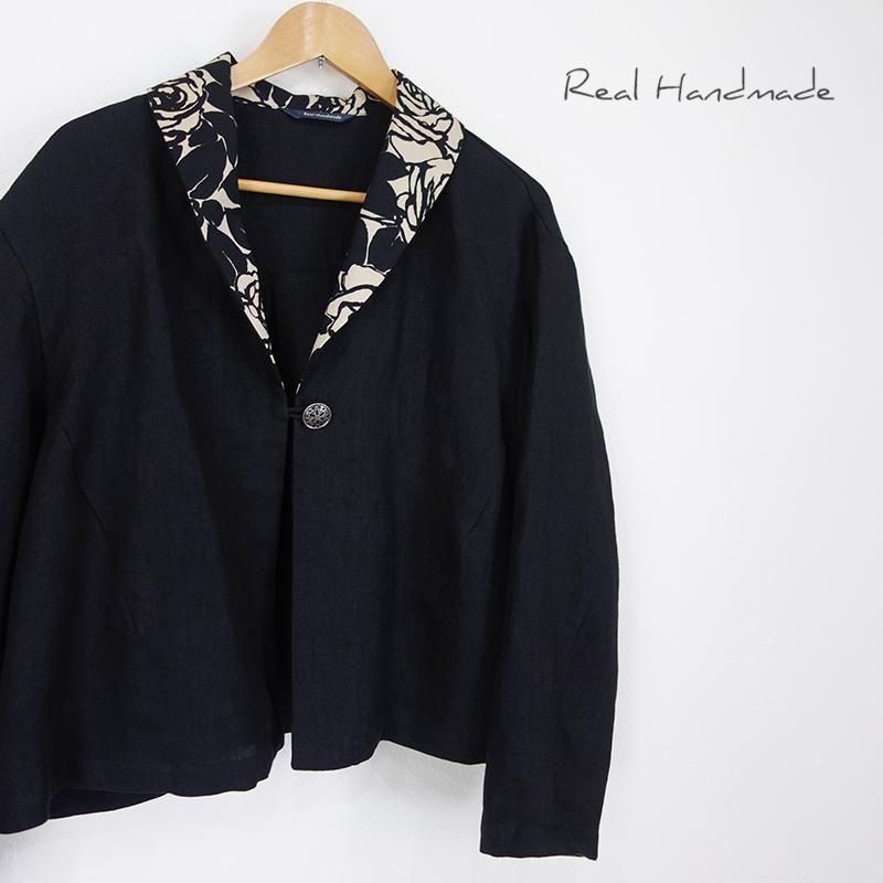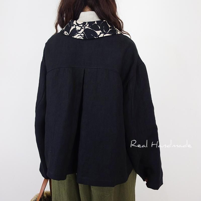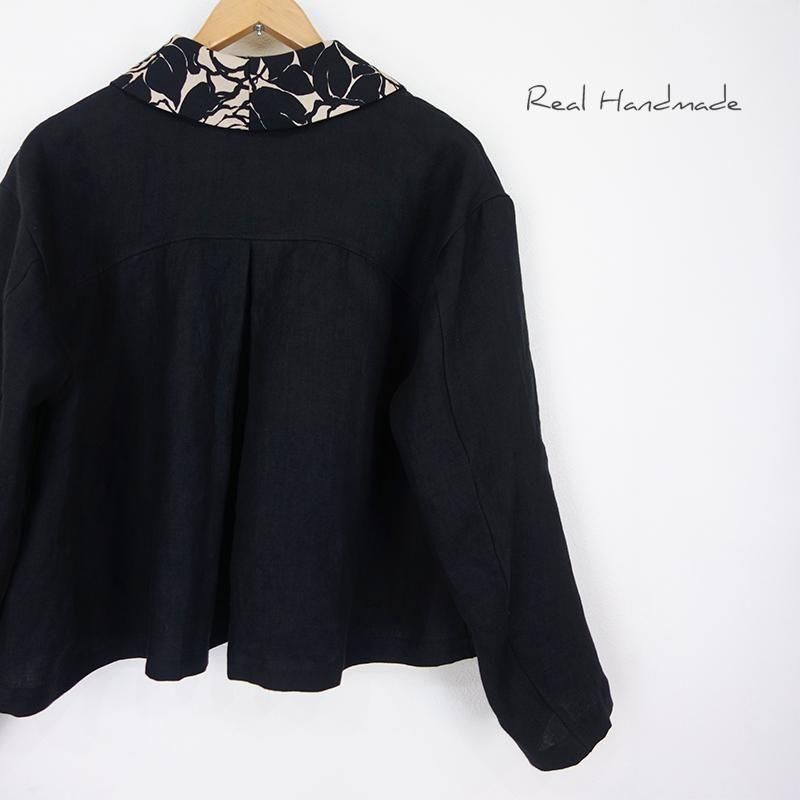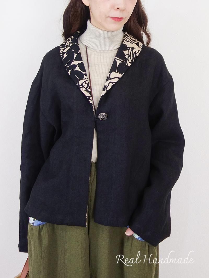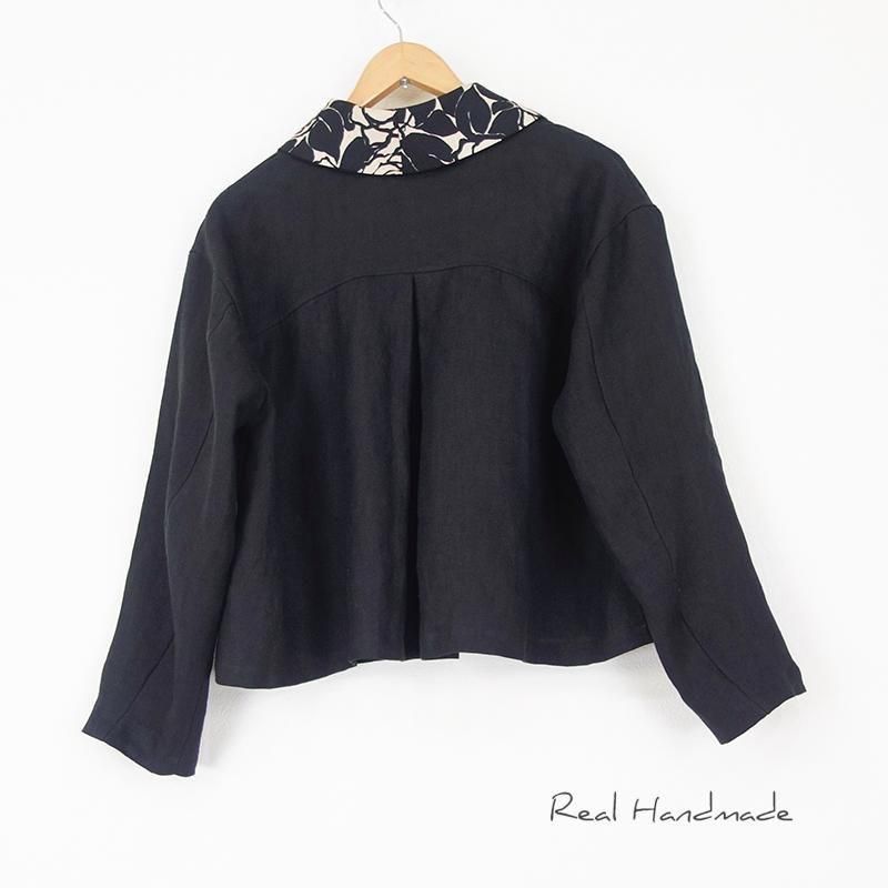 上質なブラックリネンで製作した、羽織りジャケットです。