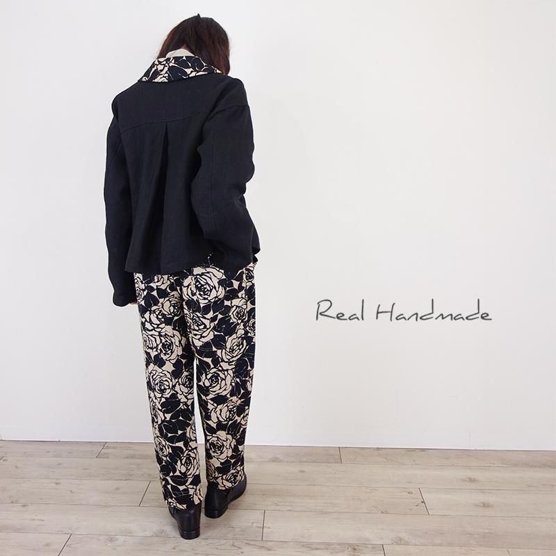 切り絵フラワーとブラックリネンの3WAYサルエル風パンツ(セットアップ可)