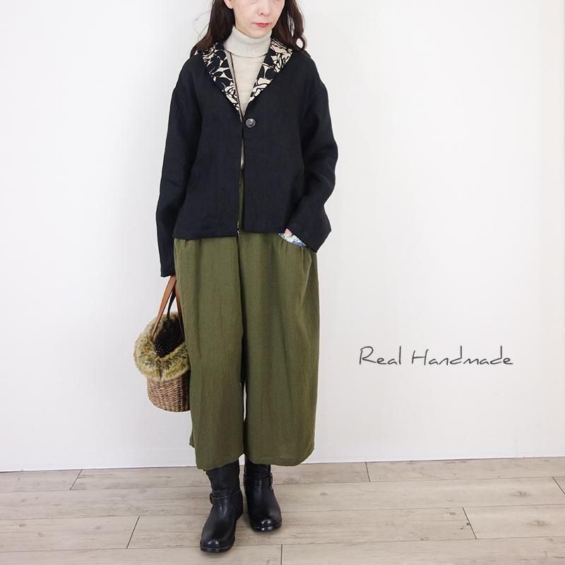[Coordinate] ワッシャーハーフリネンKAKI・リバティポケットの前後切替ふんわりパンツ(セットアップ対応)