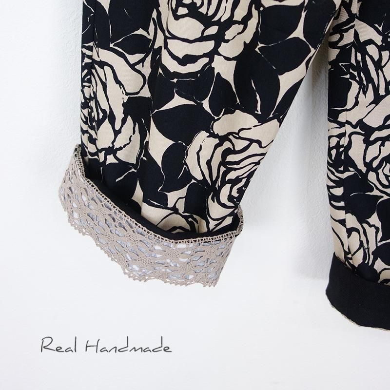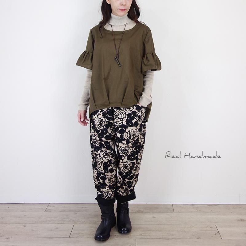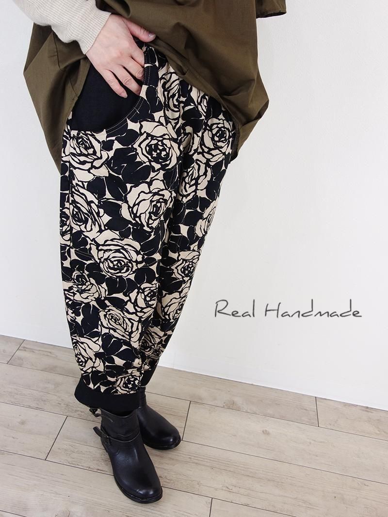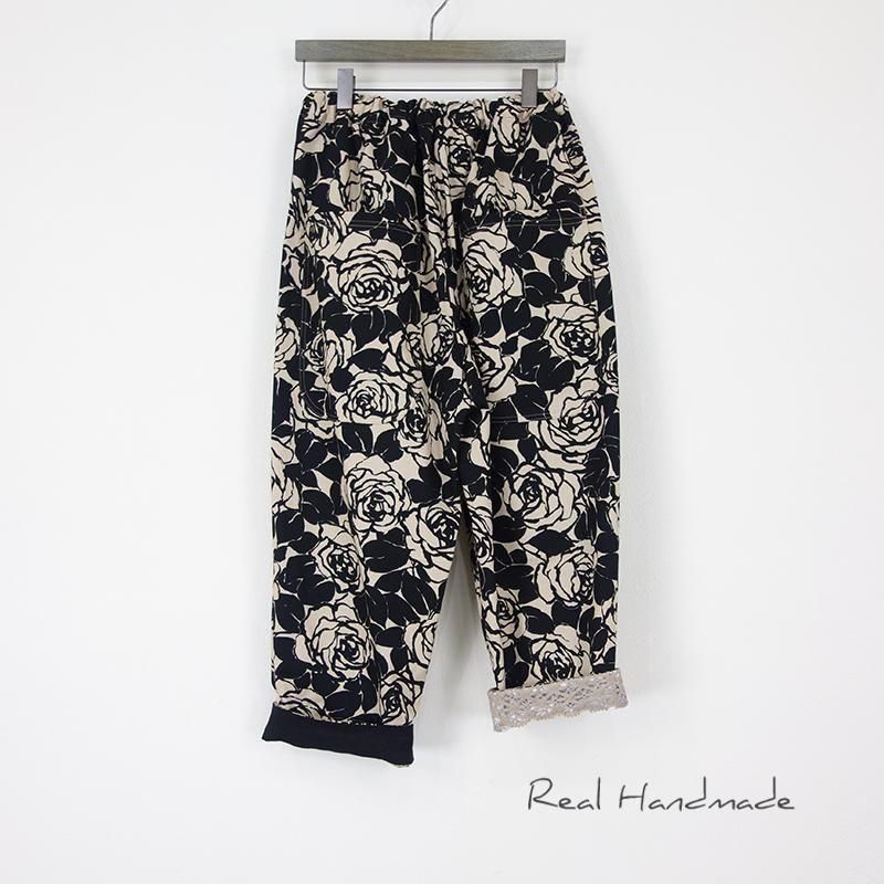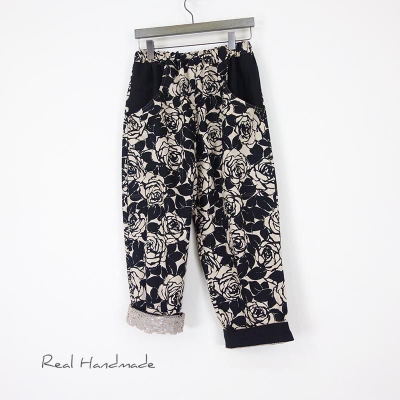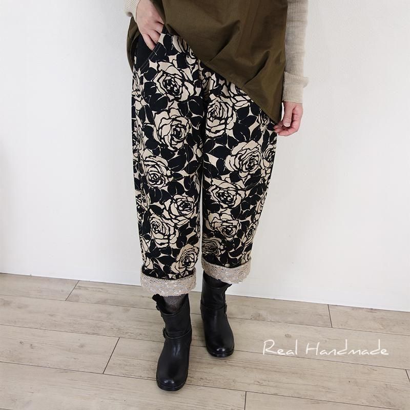 大人の雰囲気漂うフラワーコットンをメインに仕立てたサルエル風パンツです。