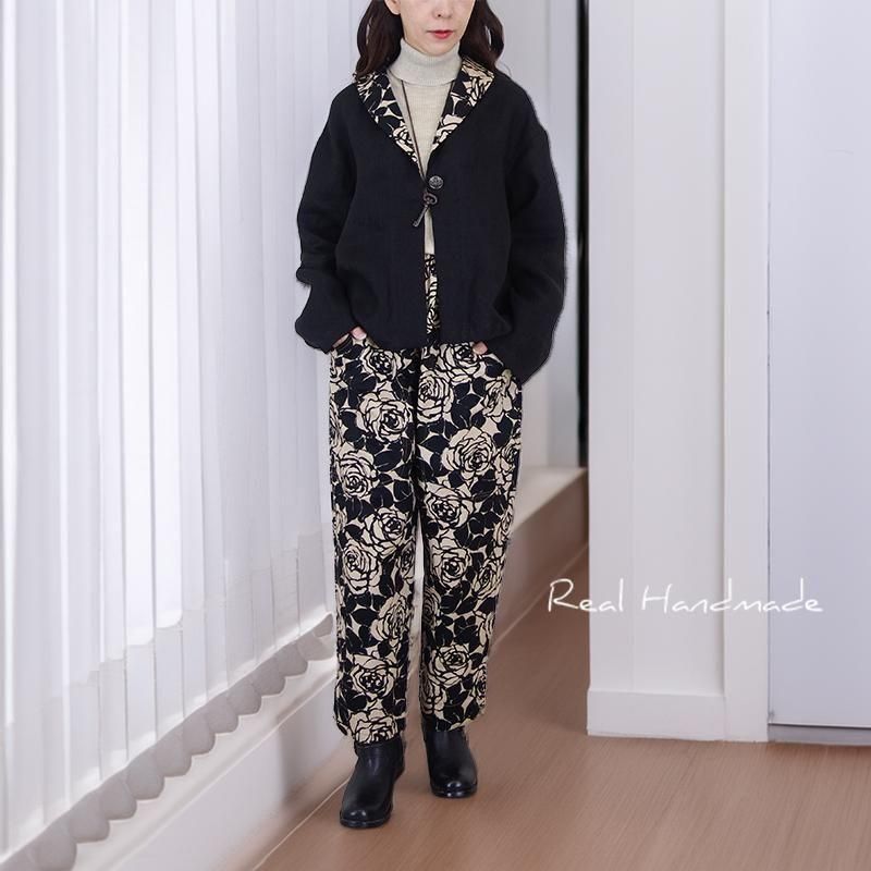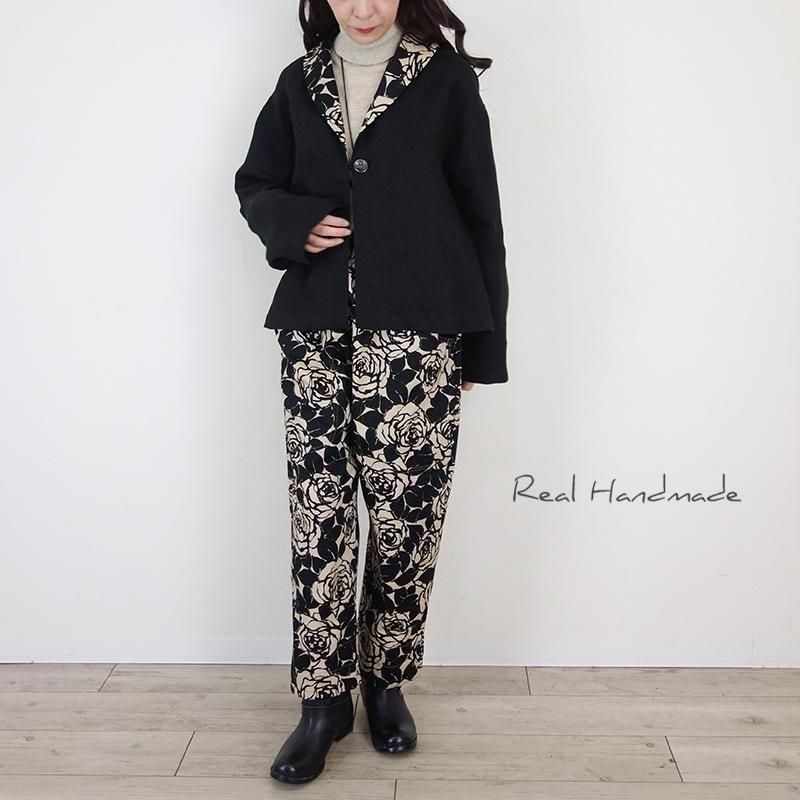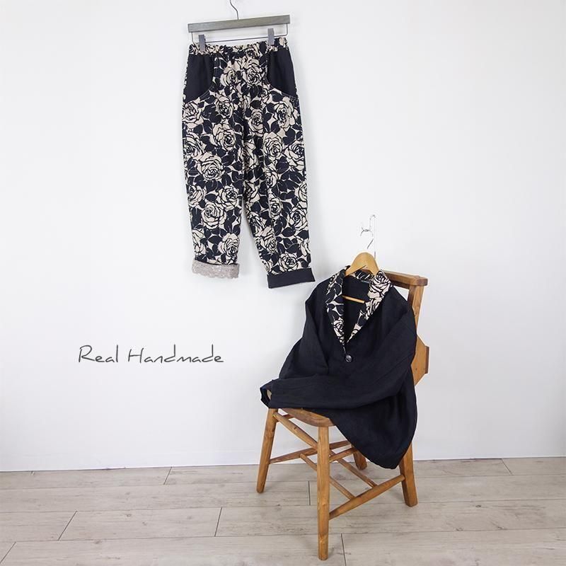 切り絵フラワーとブラックリネンの3WAYサルエル風パンツ(セットアップ可)