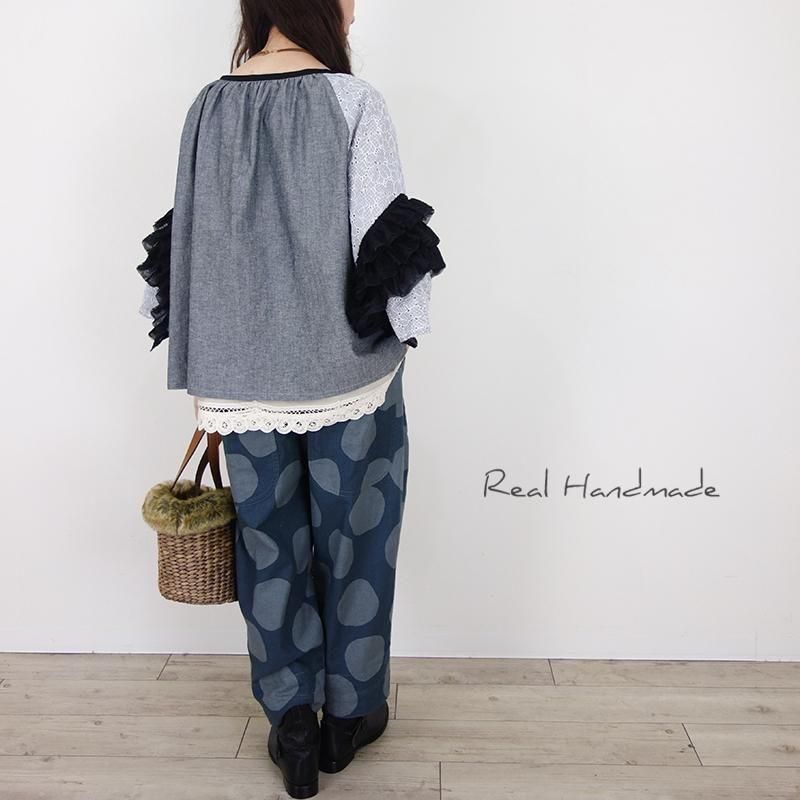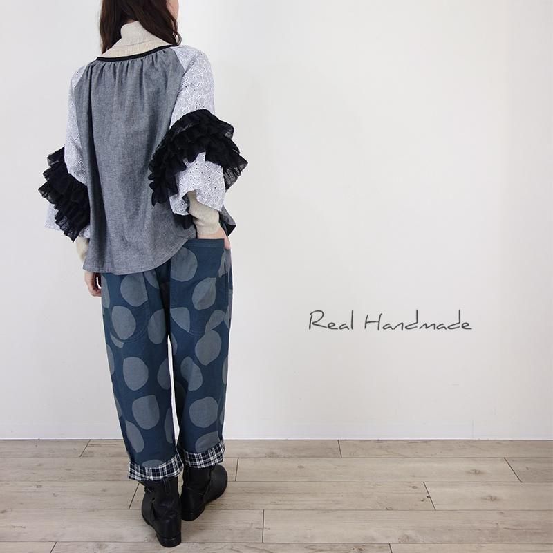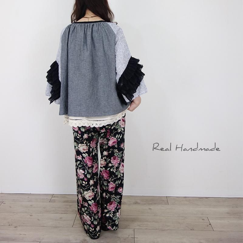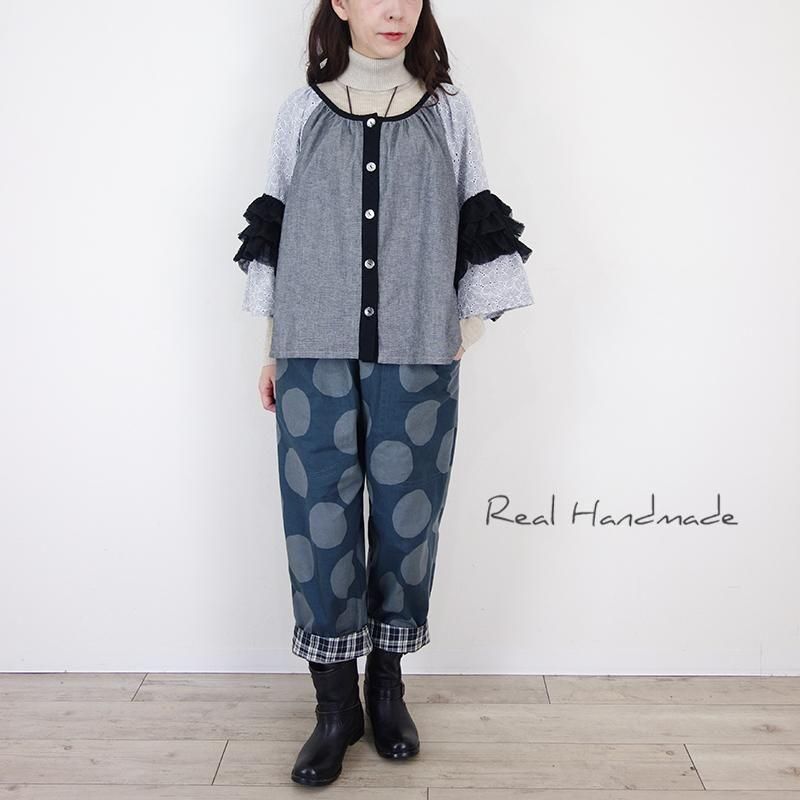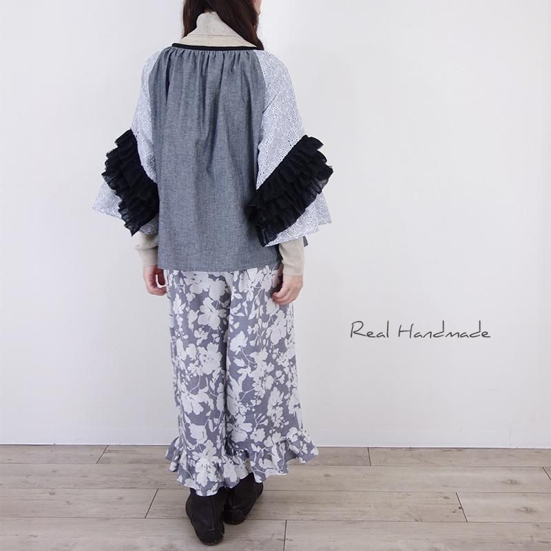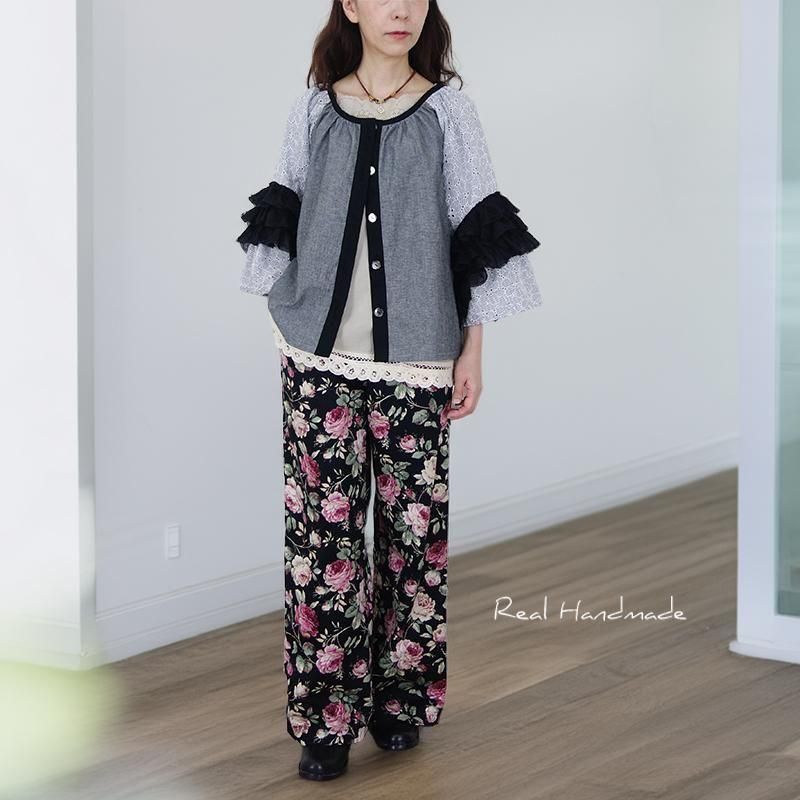 [Coordinate] [新作予約] エンジェルソフトリネン・モノクロブロッサム裾フリルパンツ(セットアップ可)