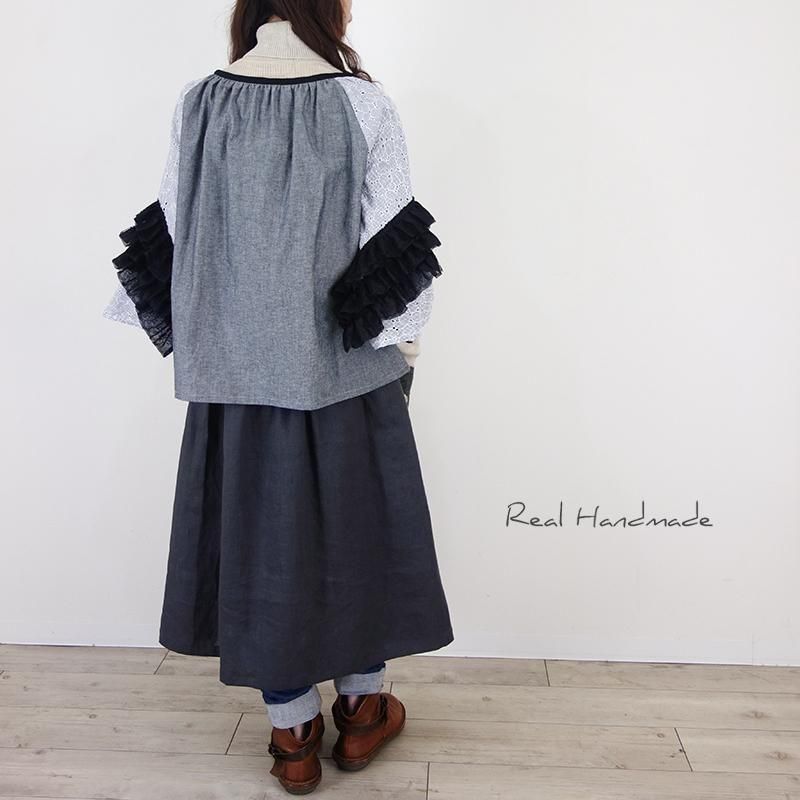 ・身頃前後:コットンダンガリー(ブラックグレー)