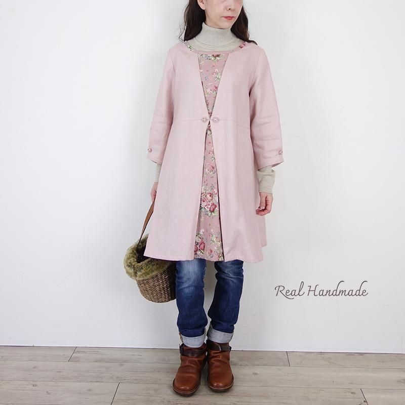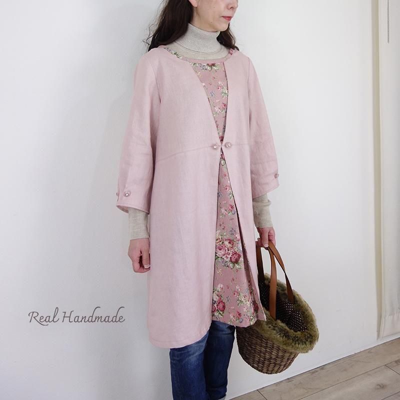 やさしいピンクリネンと、アンティークローズ柄のコットンリネンを