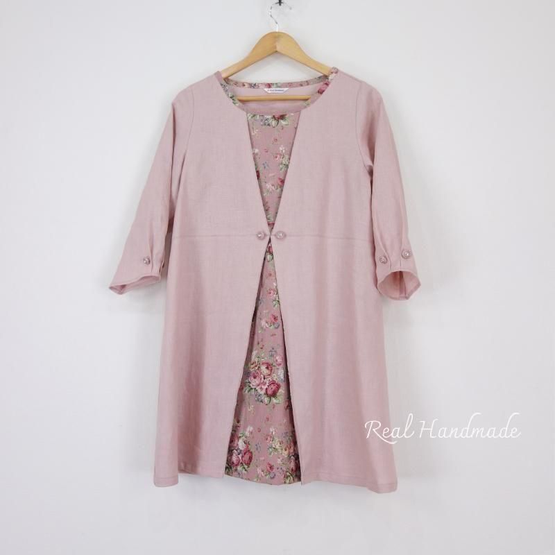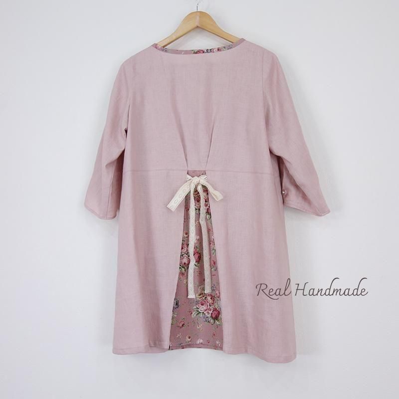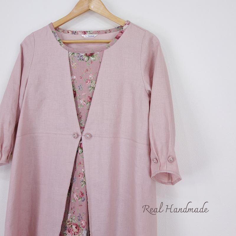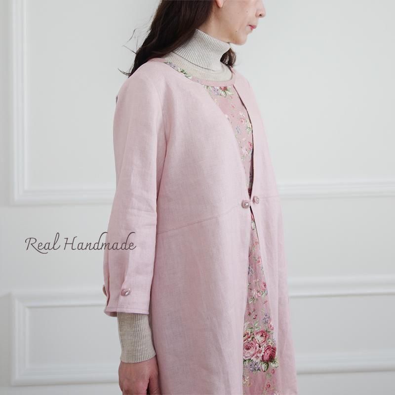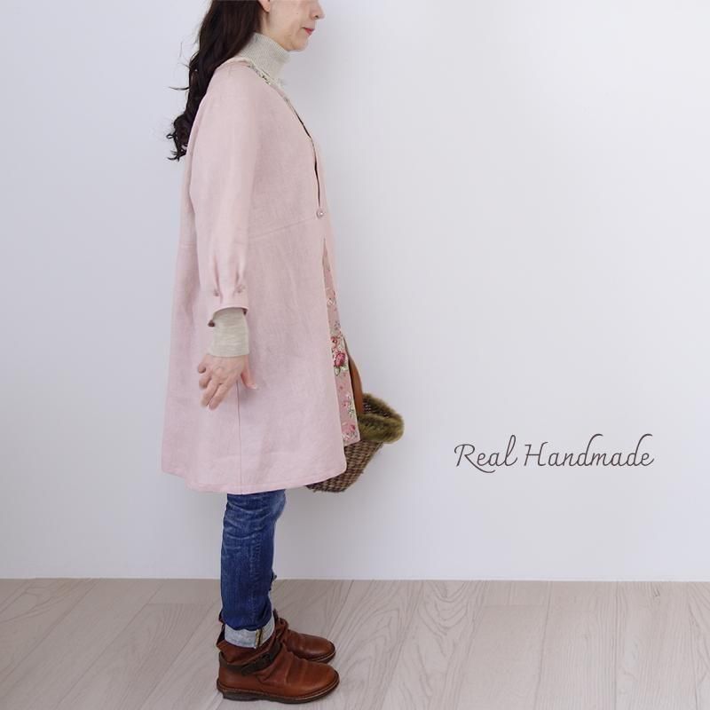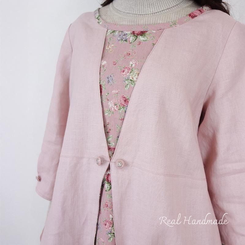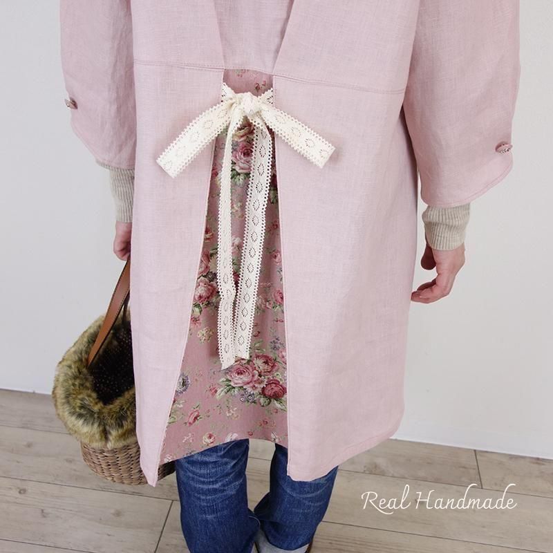 ふんわりと甘さのあるピンクリネンに、クラシカルなローズ柄を合わせることで、