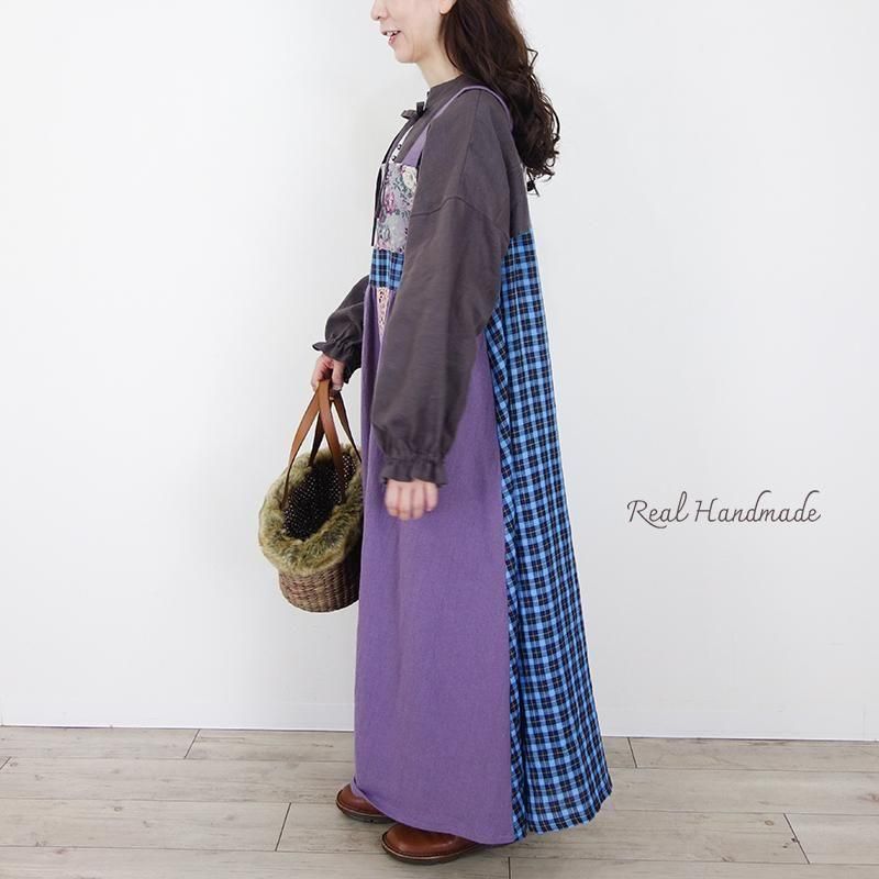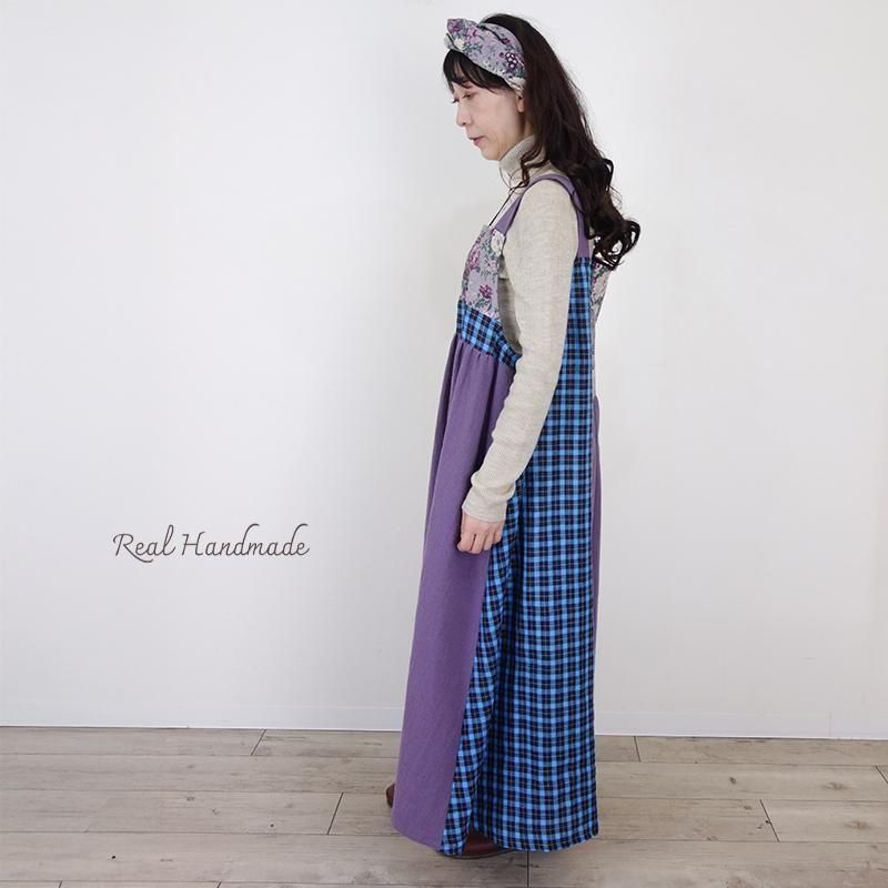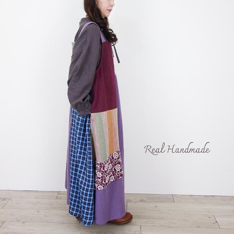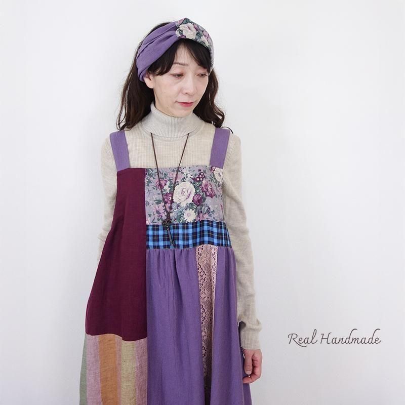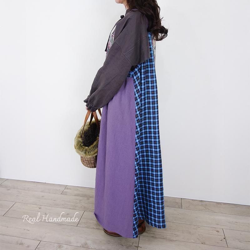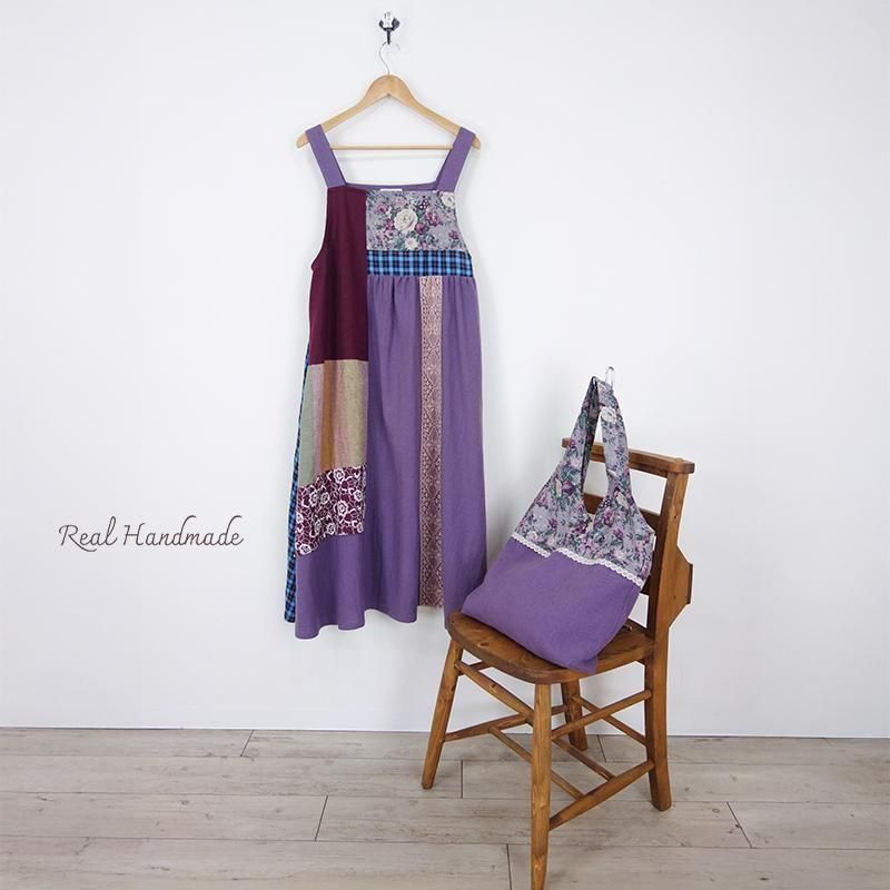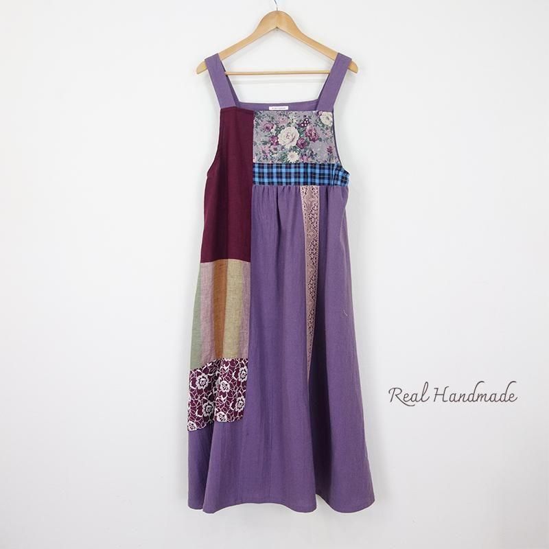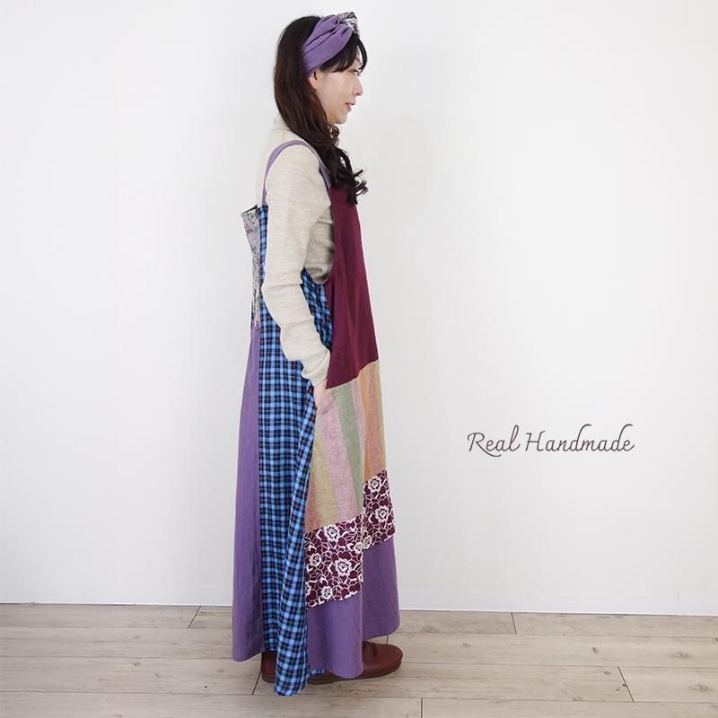 丁寧に仕立てたパッチワークのマキシ丈キャミワンピースです。