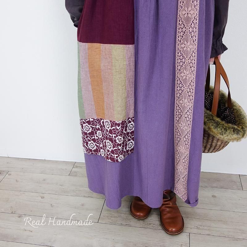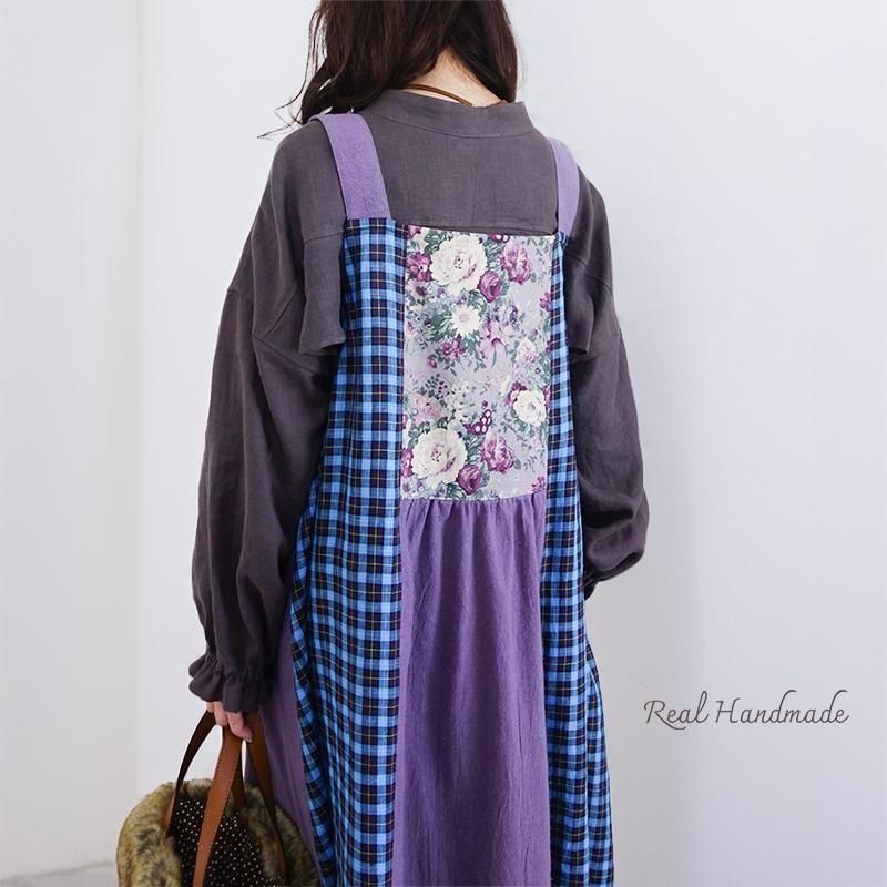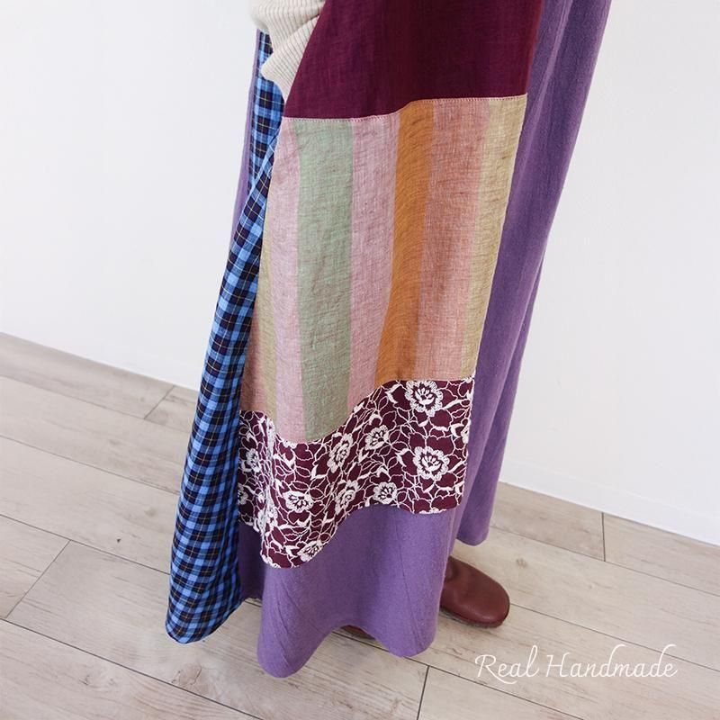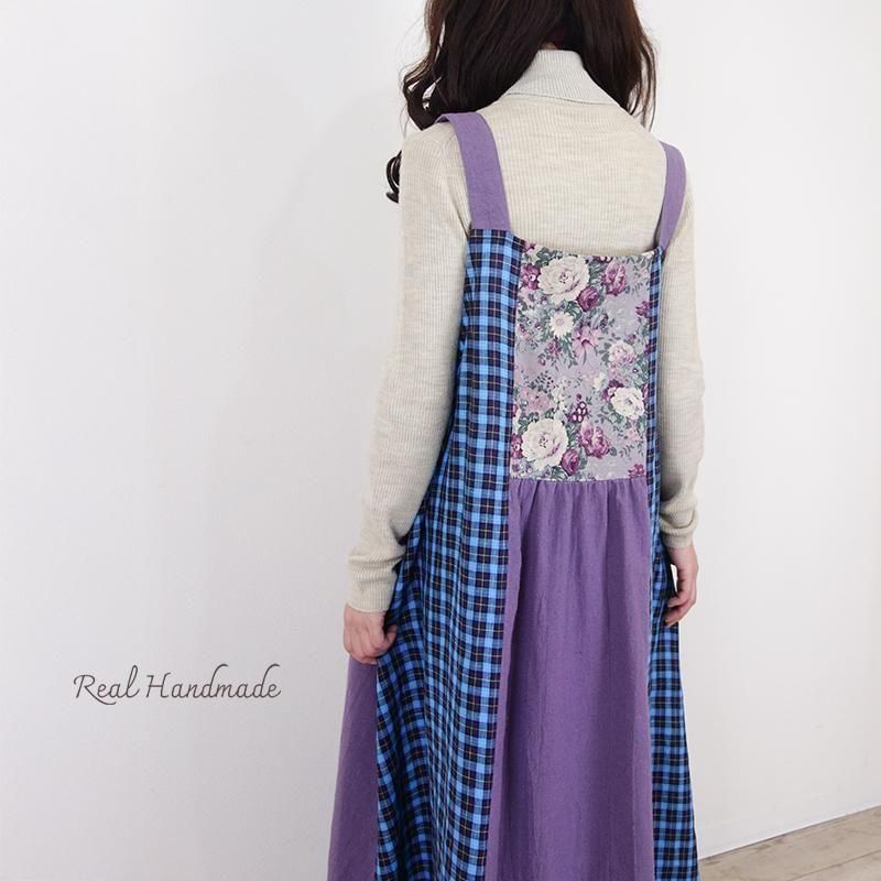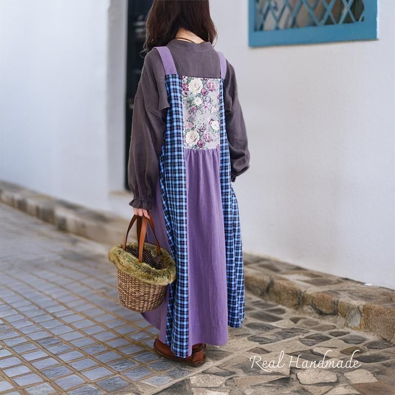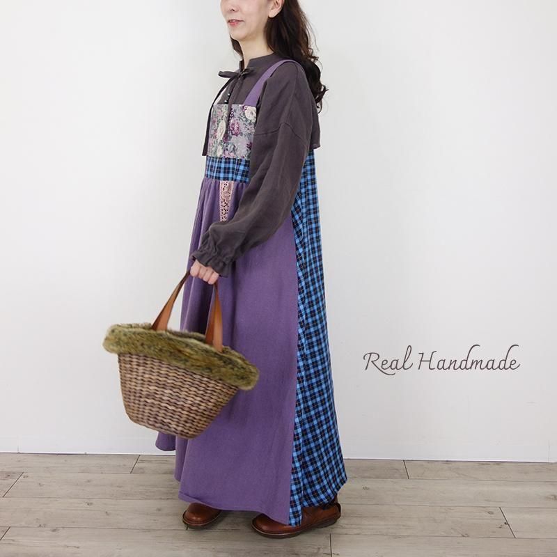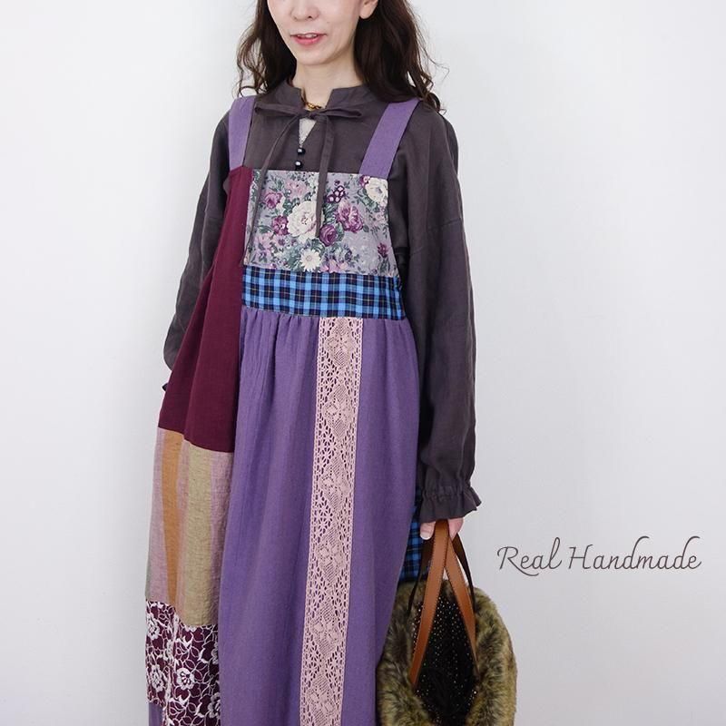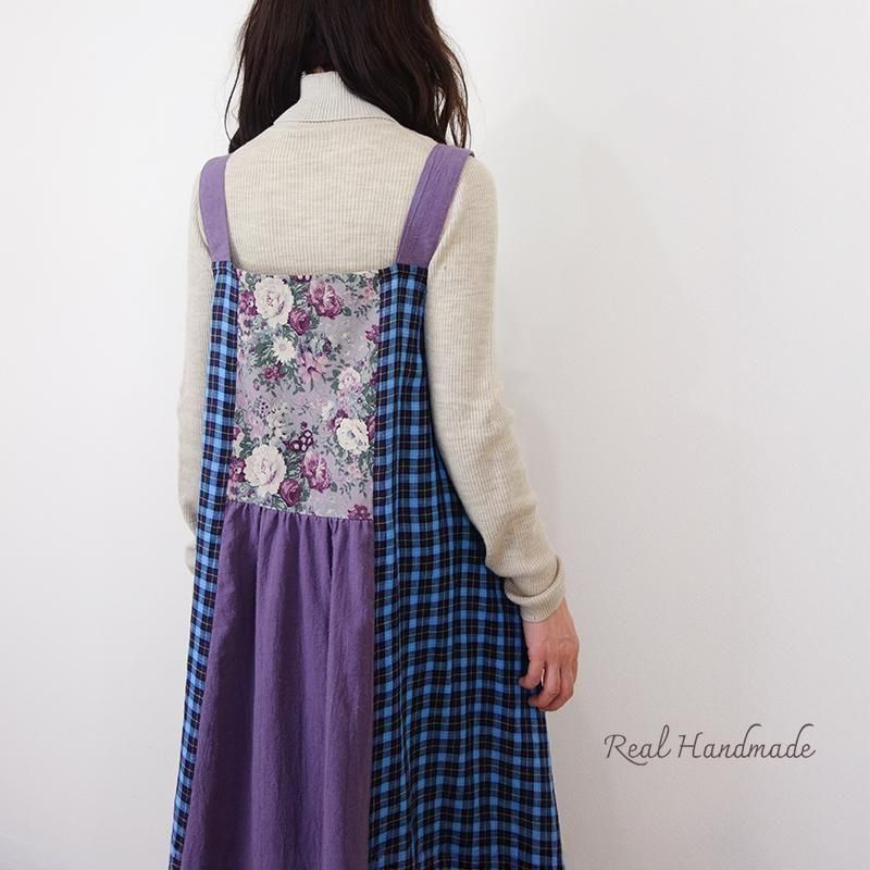 丁寧に仕立てたパッチワークのマキシ丈キャミワンピースです。