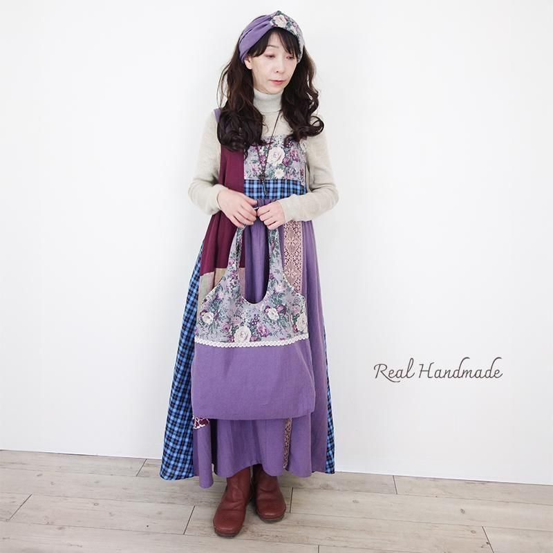 [Coordinate] アンティークフラワーとモーブリネンのソフト肩掛けBAG(リンクコーデになります)