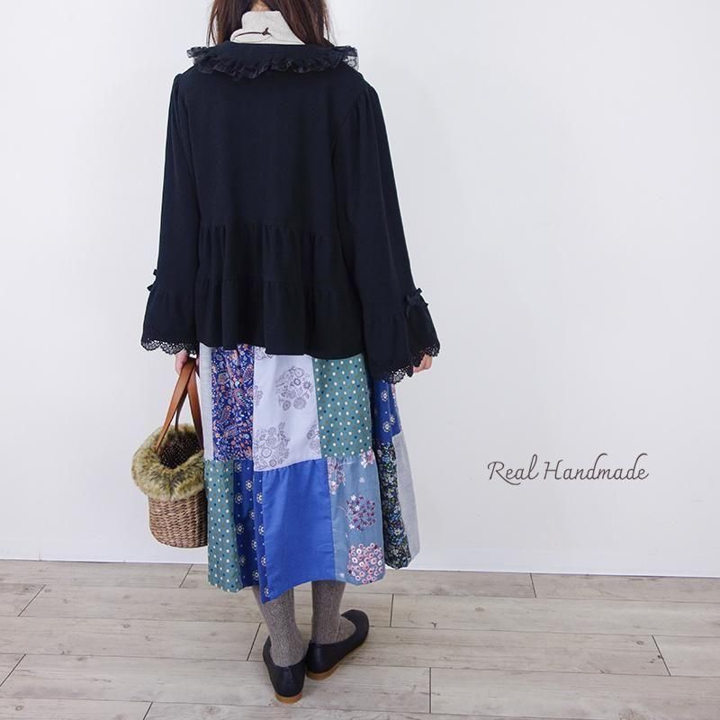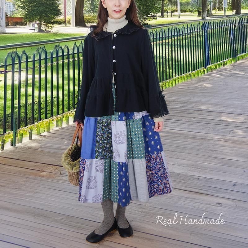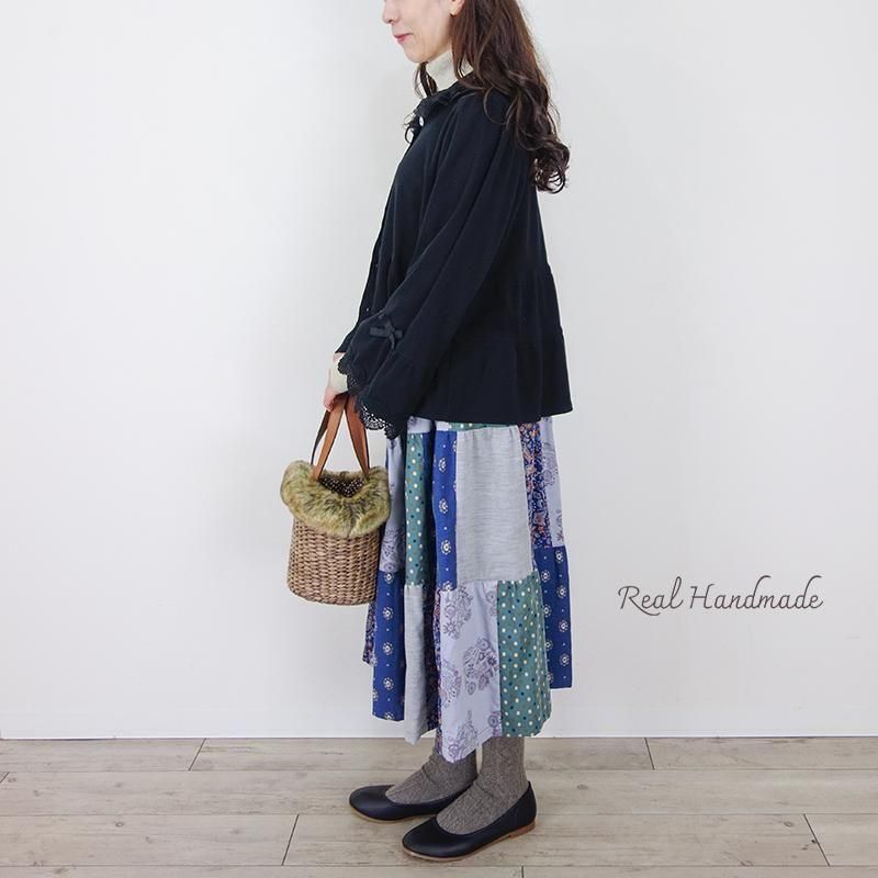あたたかパッチティアードスカート☆ノクターンネイビー