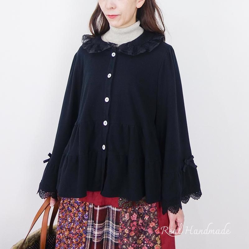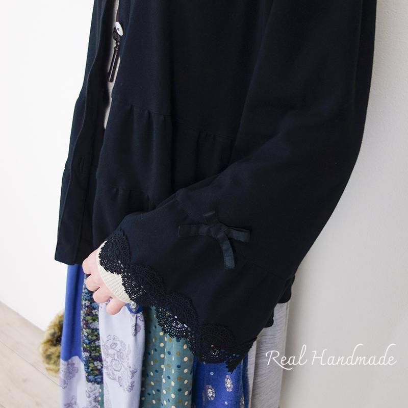 薄紫をひそませて・黒レース袖のティアード羽織りチュニック(前後OK・セットアップ可)