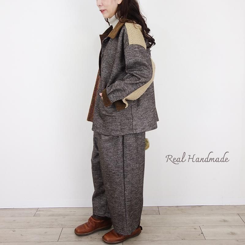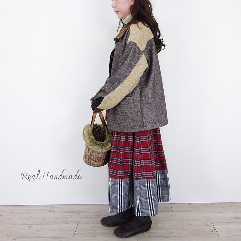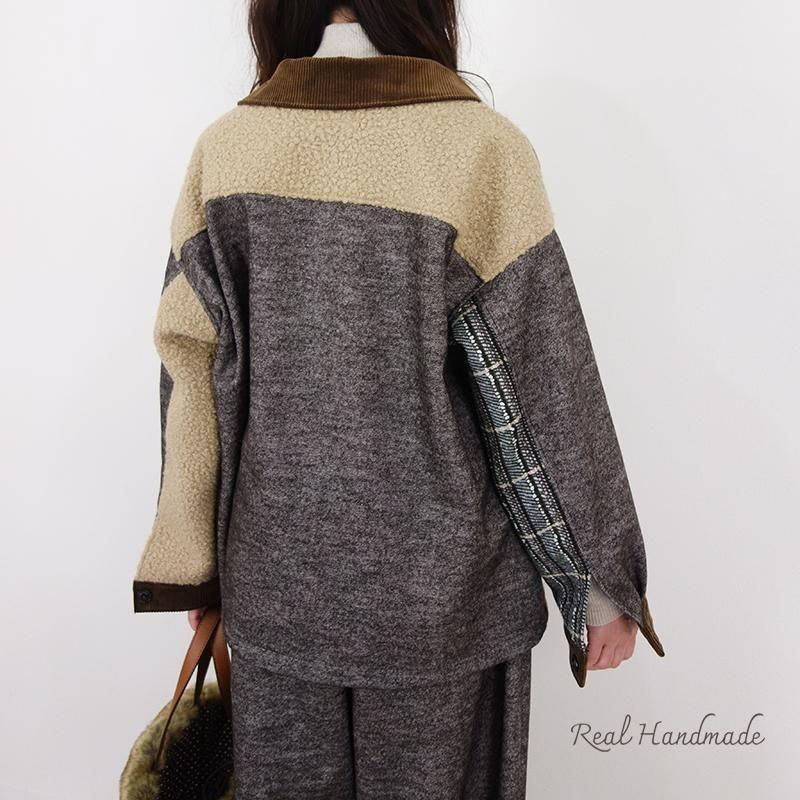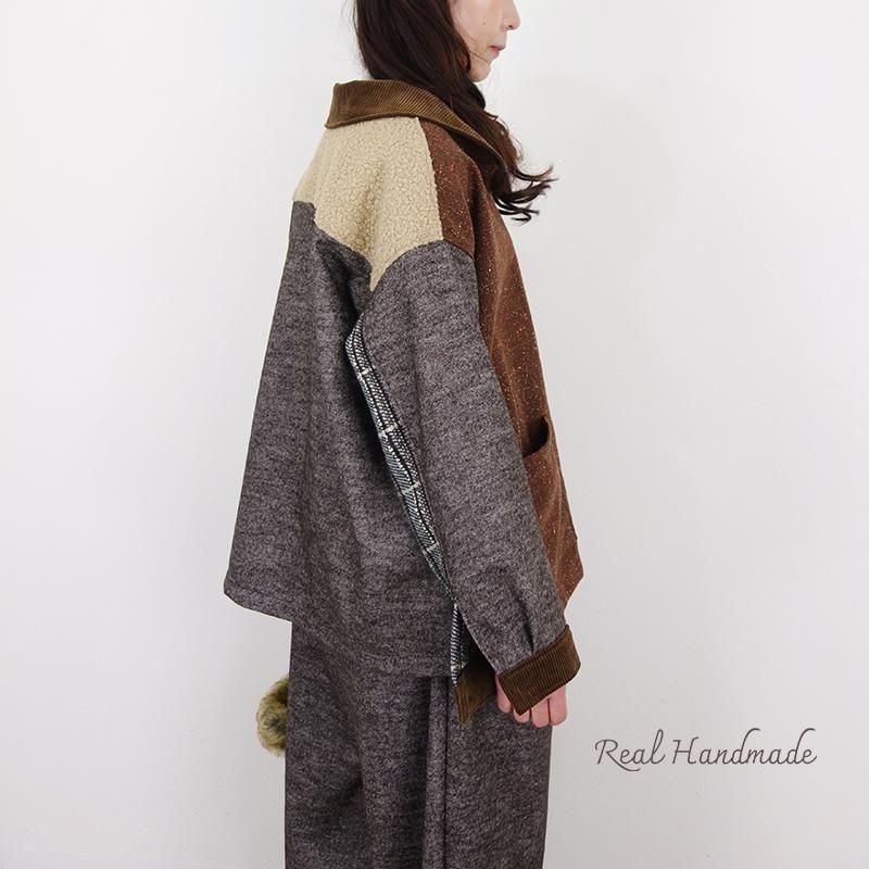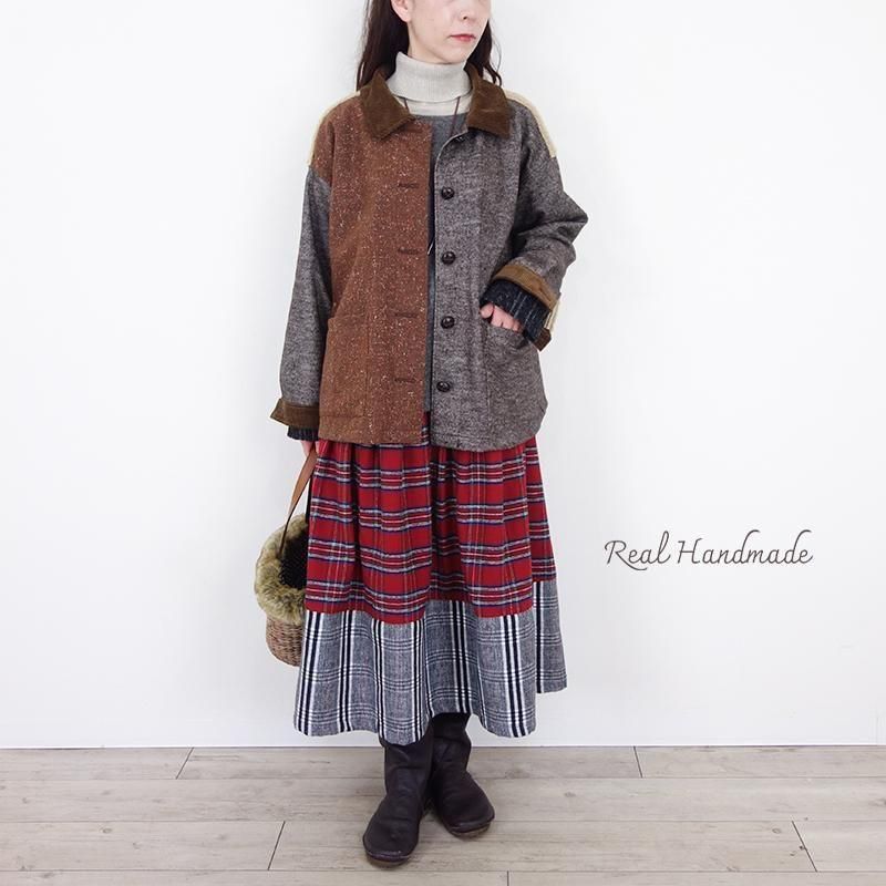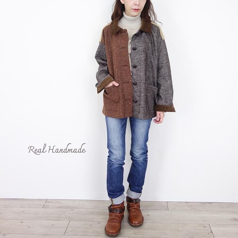 ウールネップとツイードのパッチワーク羽織りジャケット(セットアップ可)