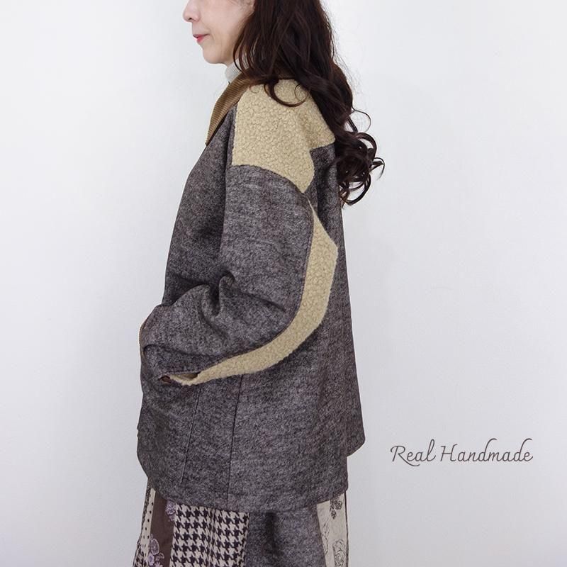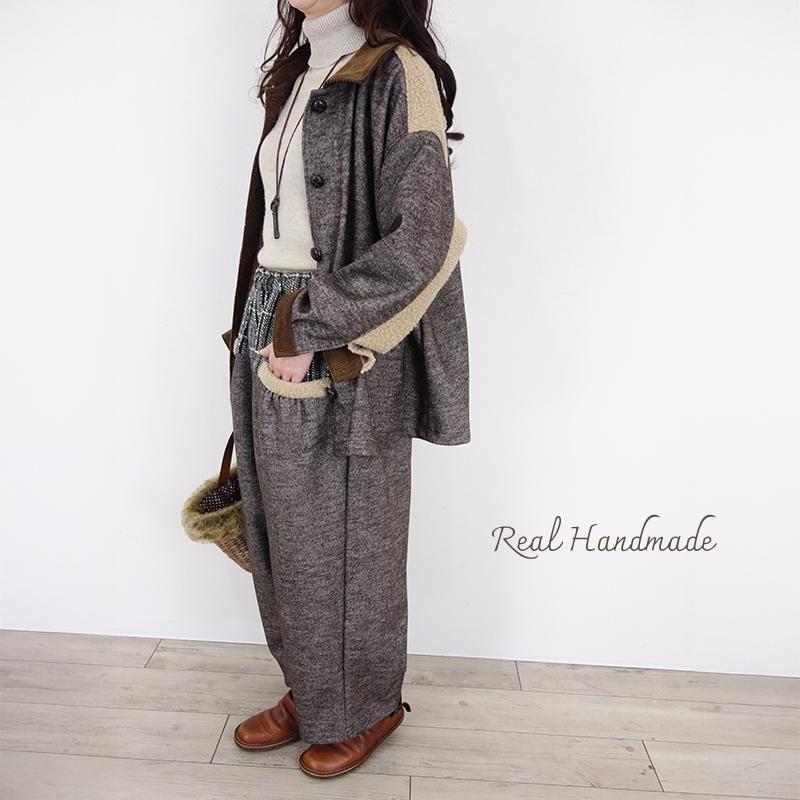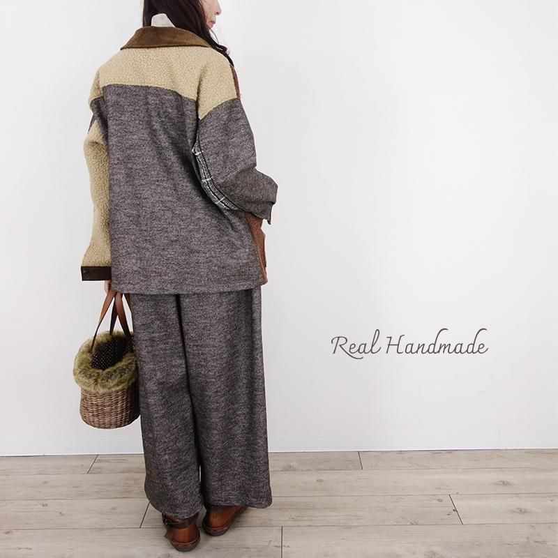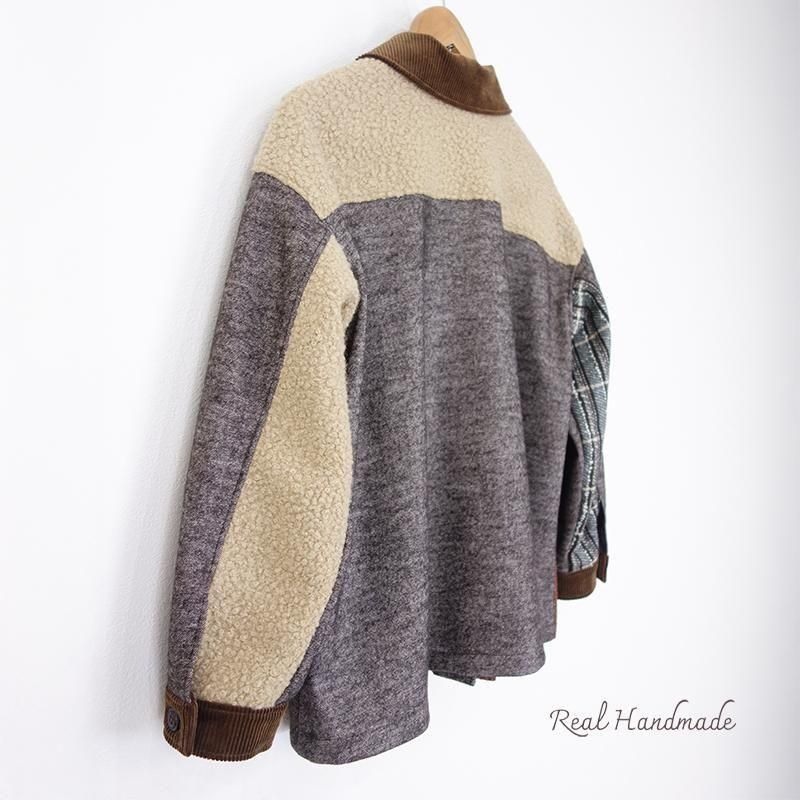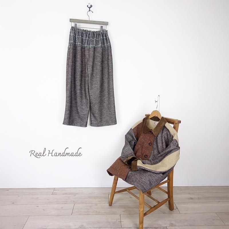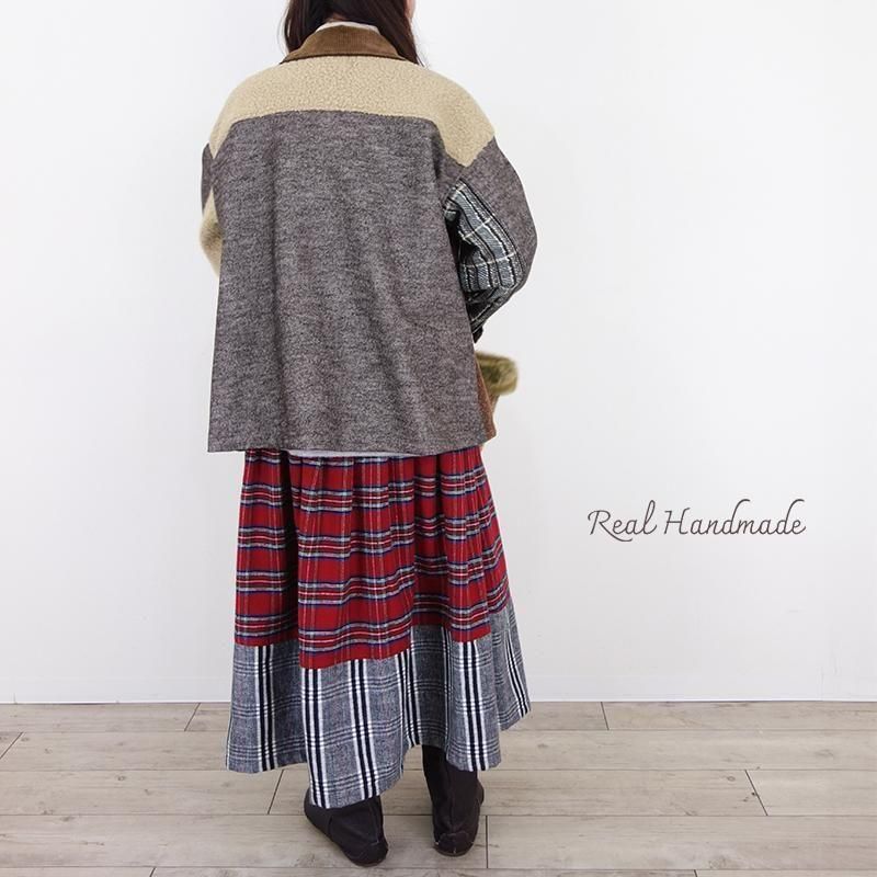 ウールネップとツイードのパッチワーク羽織りジャケット(セットアップ可)