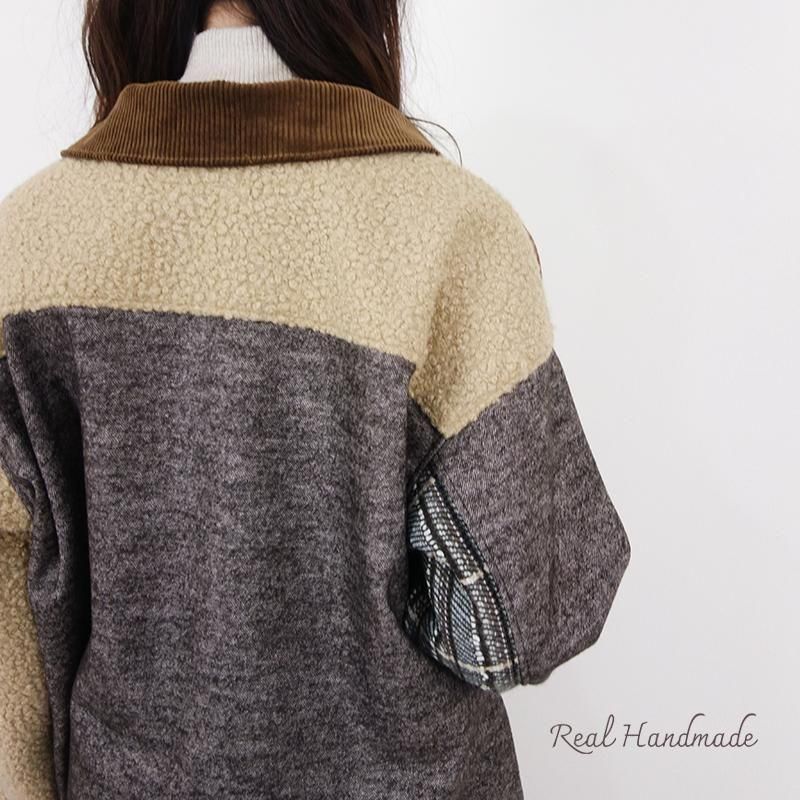・後ろ袖:ボアニット、ウールステッチネップツイード