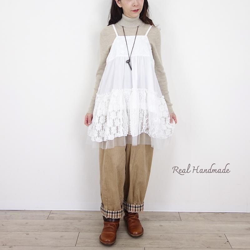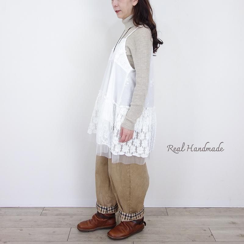 ラスト![予約販売] ヒッコリー、貴婦人とレースのゆるテーパードパンツ〈ヨーロピアンテイスト〉