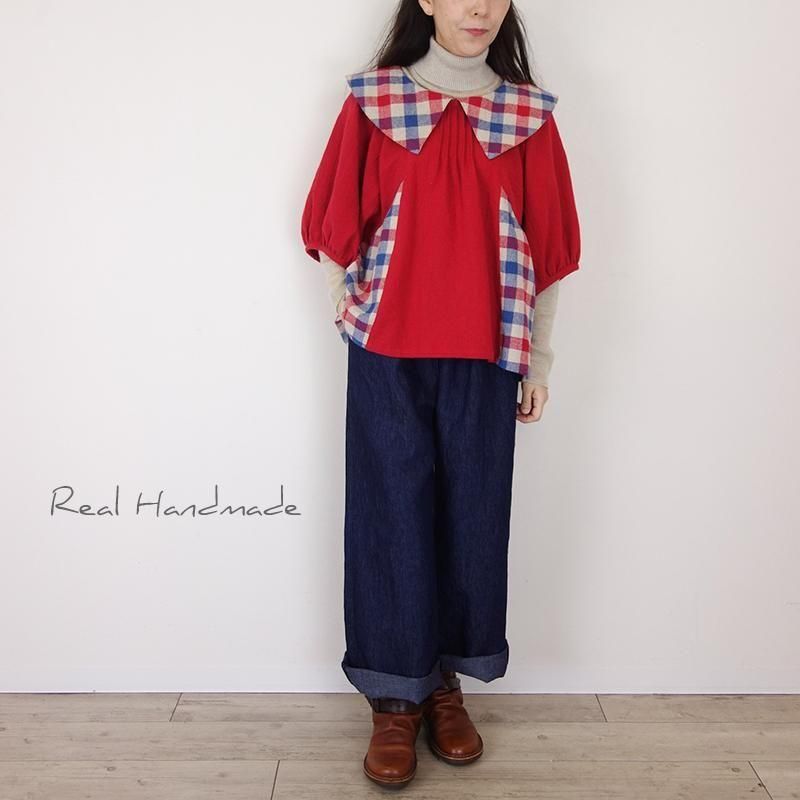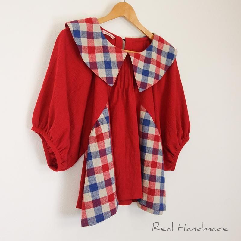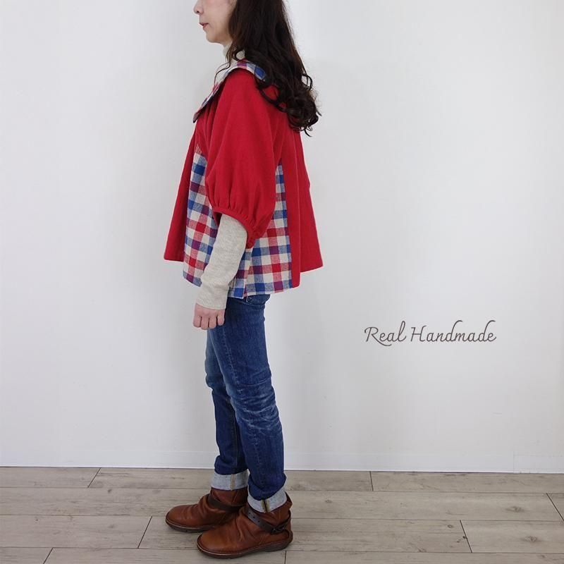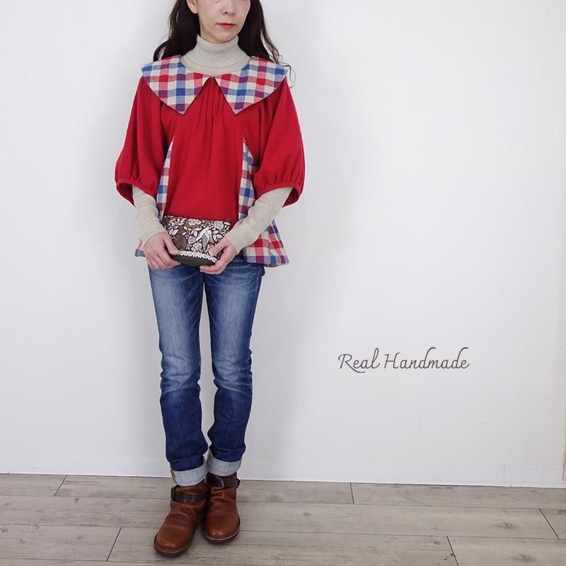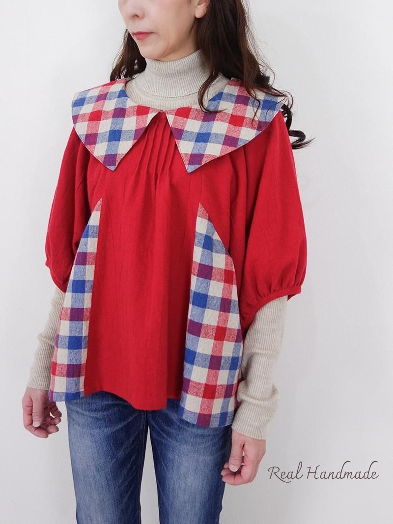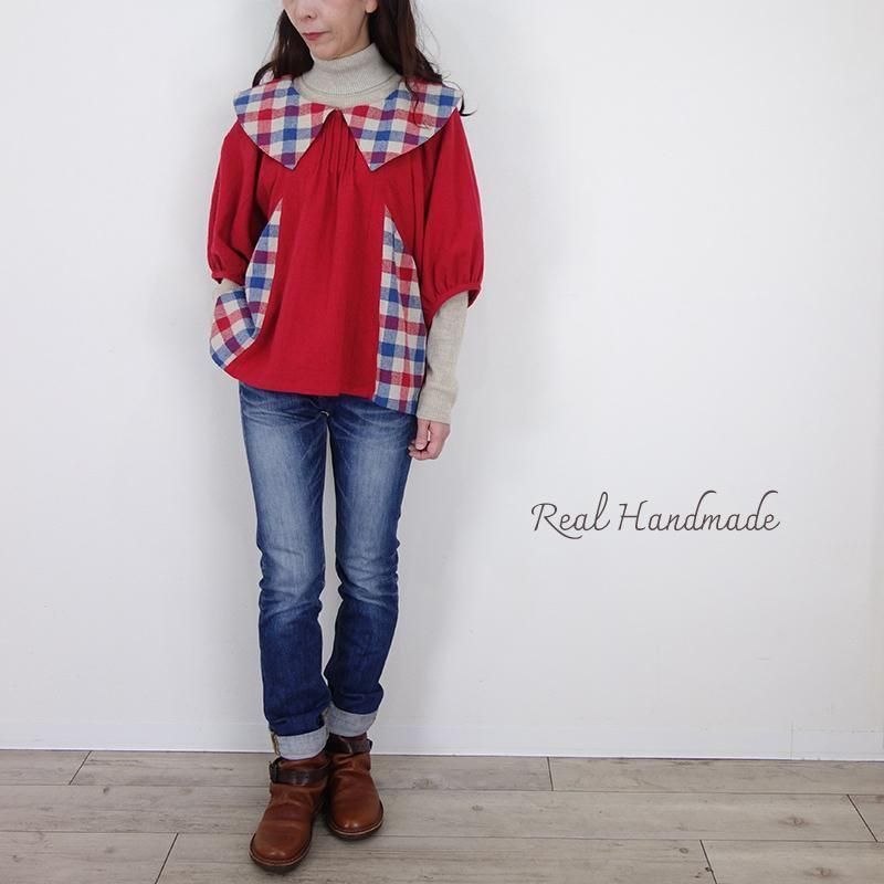 クラシカルカラーのブリリアンレッド・ドルマンブラウス -トリコロールチェック-