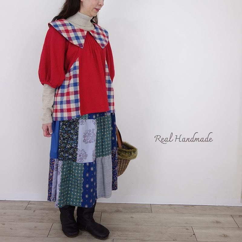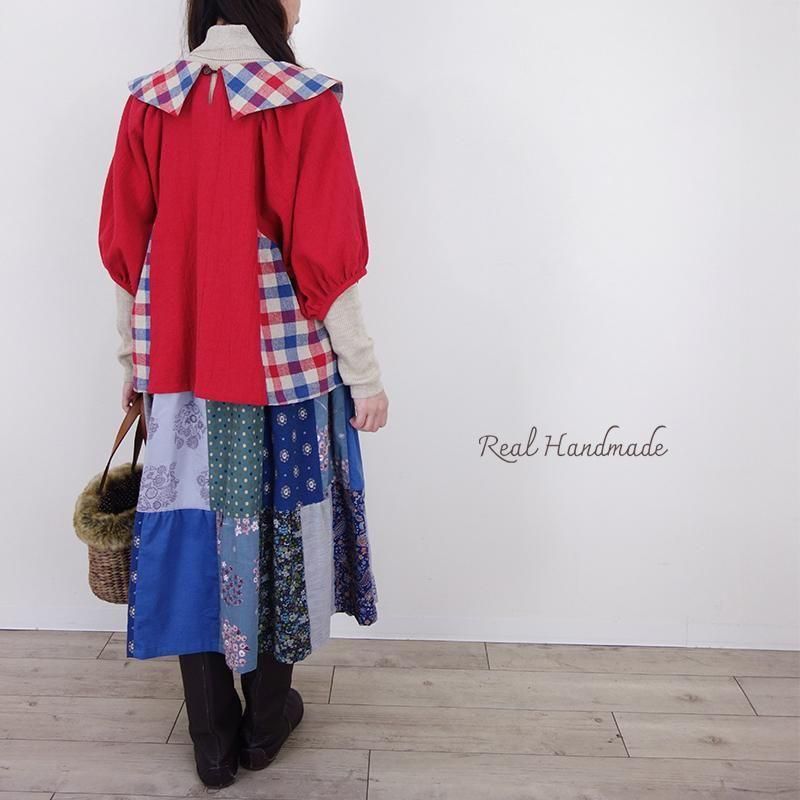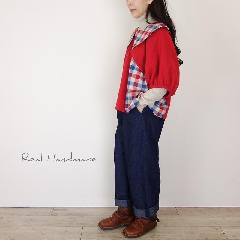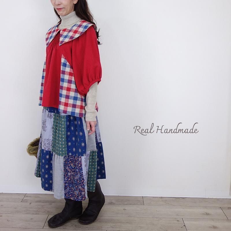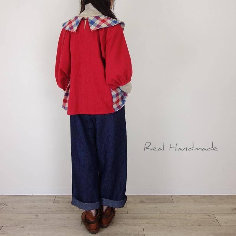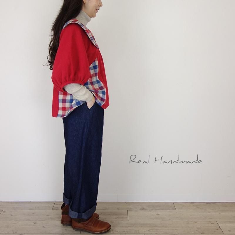 クラシカルカラーのブリリアンレッド・ドルマンブラウス -トリコロールチェック-